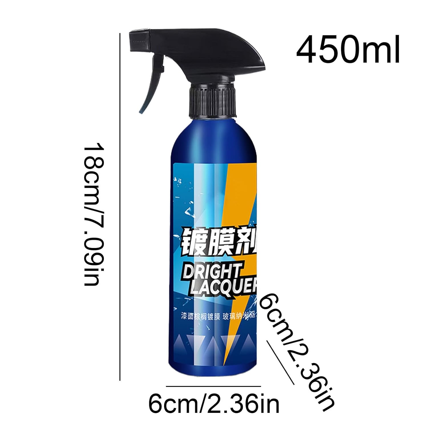 O produto possui um conteúdo líquido de 450ml, sendo formulado à base de cera natural para maior segurança e qualidade no cuidado com a pintura. A embalagem apresenta dimensões aproximadas de 6 x 6 x 18 cm, totalizando um peso total de cerca de 500g, o que facilita o manuseio e o armazenamento em sua garagem ou porta-malas.