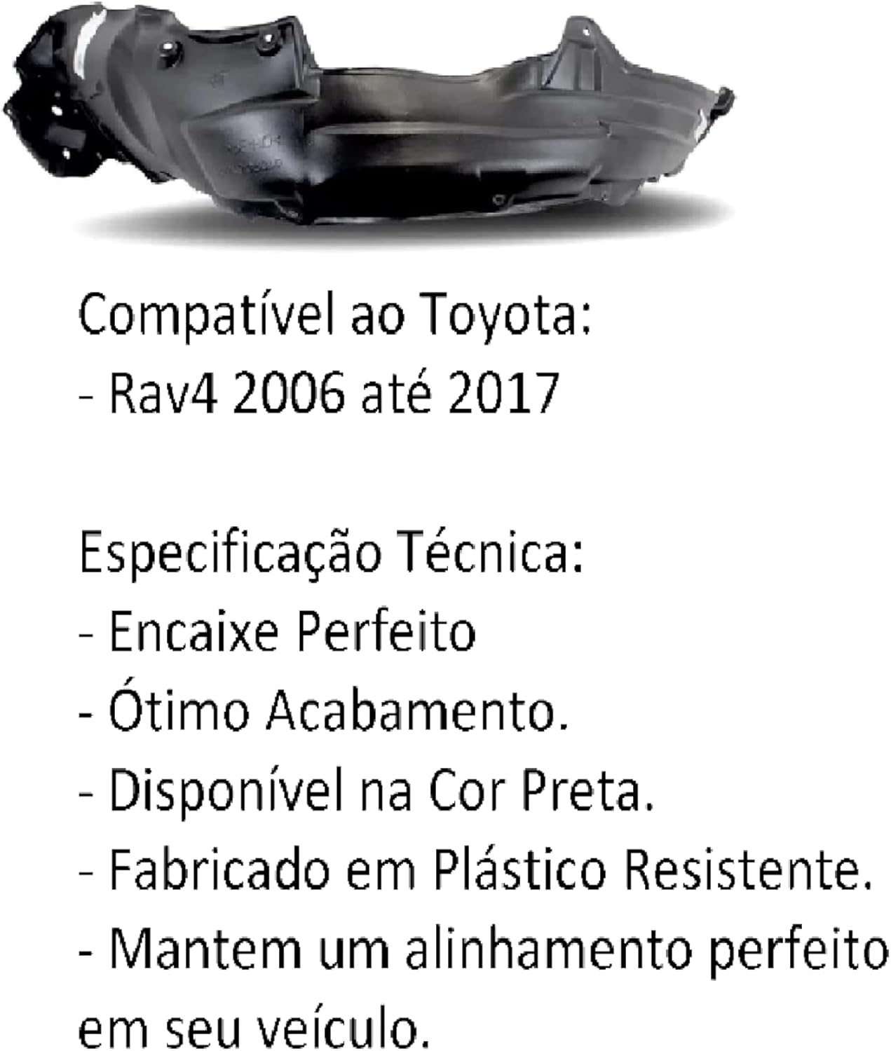 Ideal para proprietários de Toyota Rav4 (modelos 2013-2017) que buscam uma solução de reparo eficiente, durável e com ótimo custo-benefício, garantindo que o para-lama permaneça protegido contra o desgaste natural das ruas e rodovias.