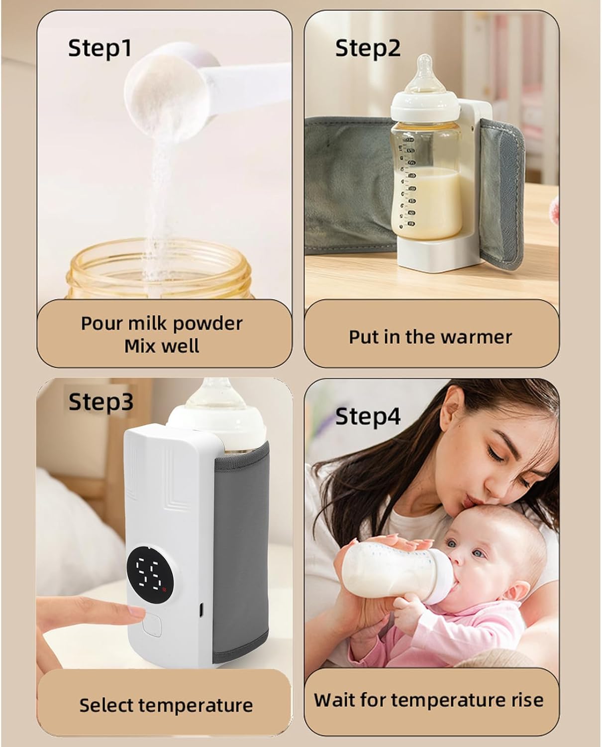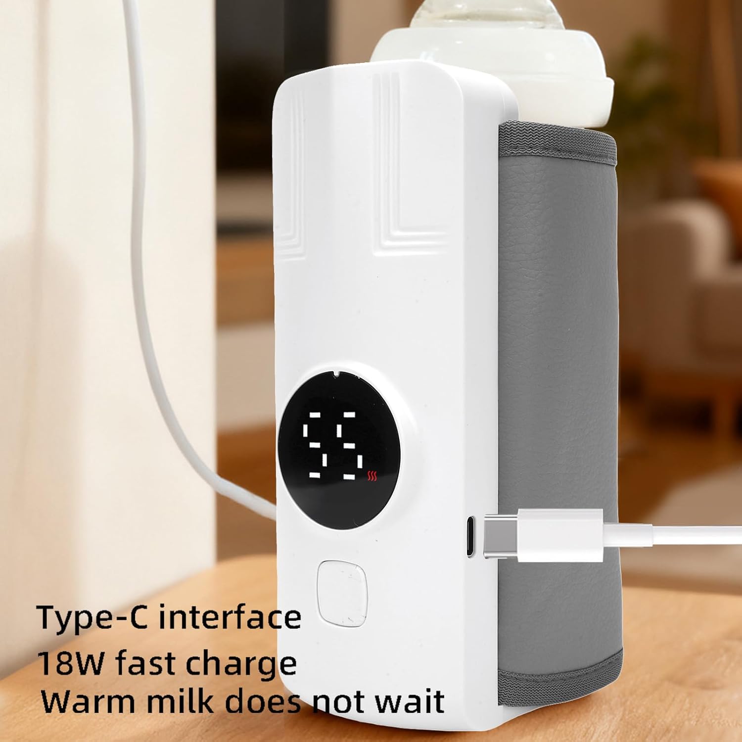 Este aquecedor portátil de mamadeiras foi desenvolvido com materiais de alta qualidade, como ABS, veludo e couro, oferecendo durabilidade e um toque macio. Sua construção inteligente permite um aquecimento uniforme, garantindo segurança e conforto total para o seu filho em qualquer passeio ou viagem.