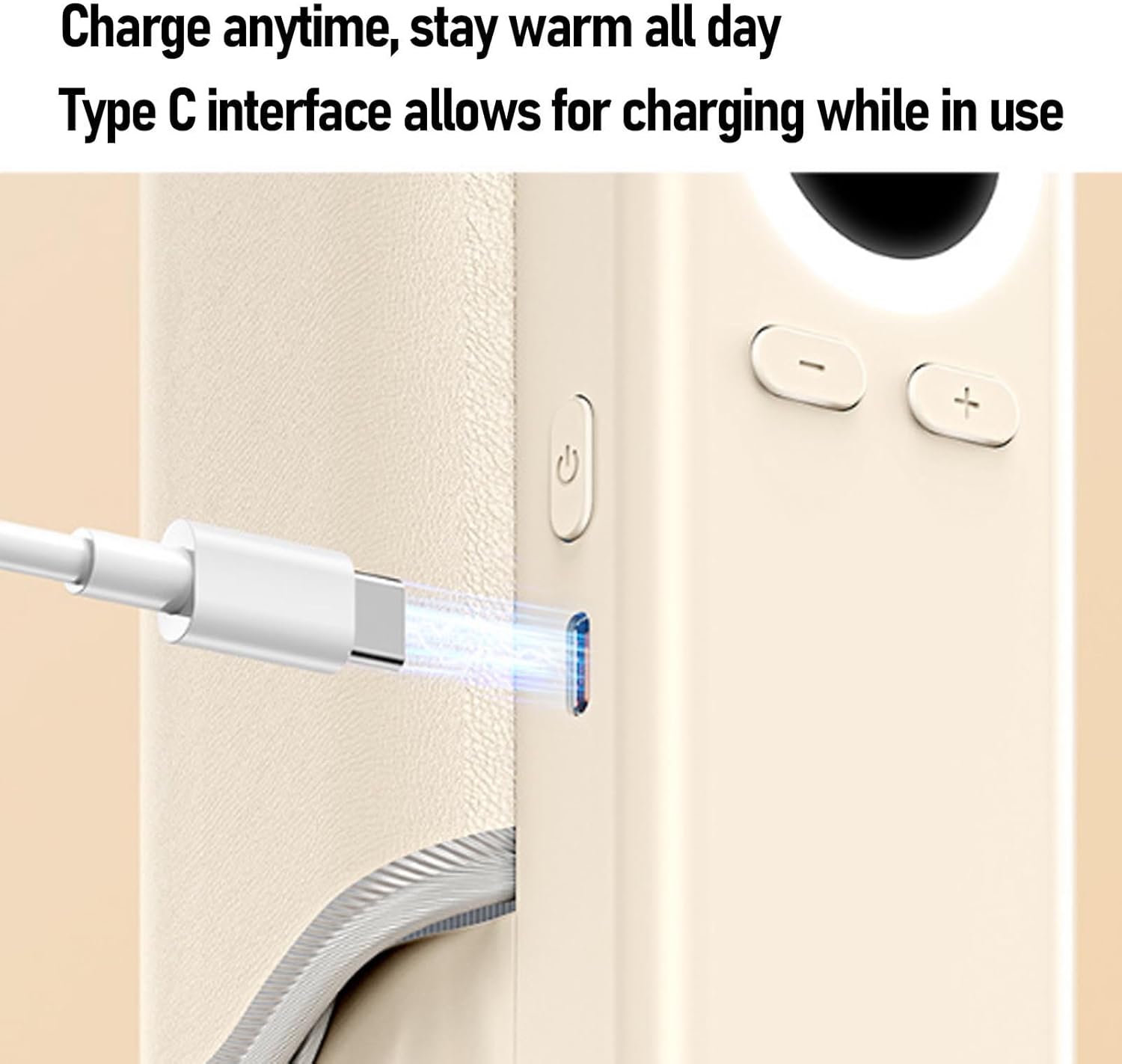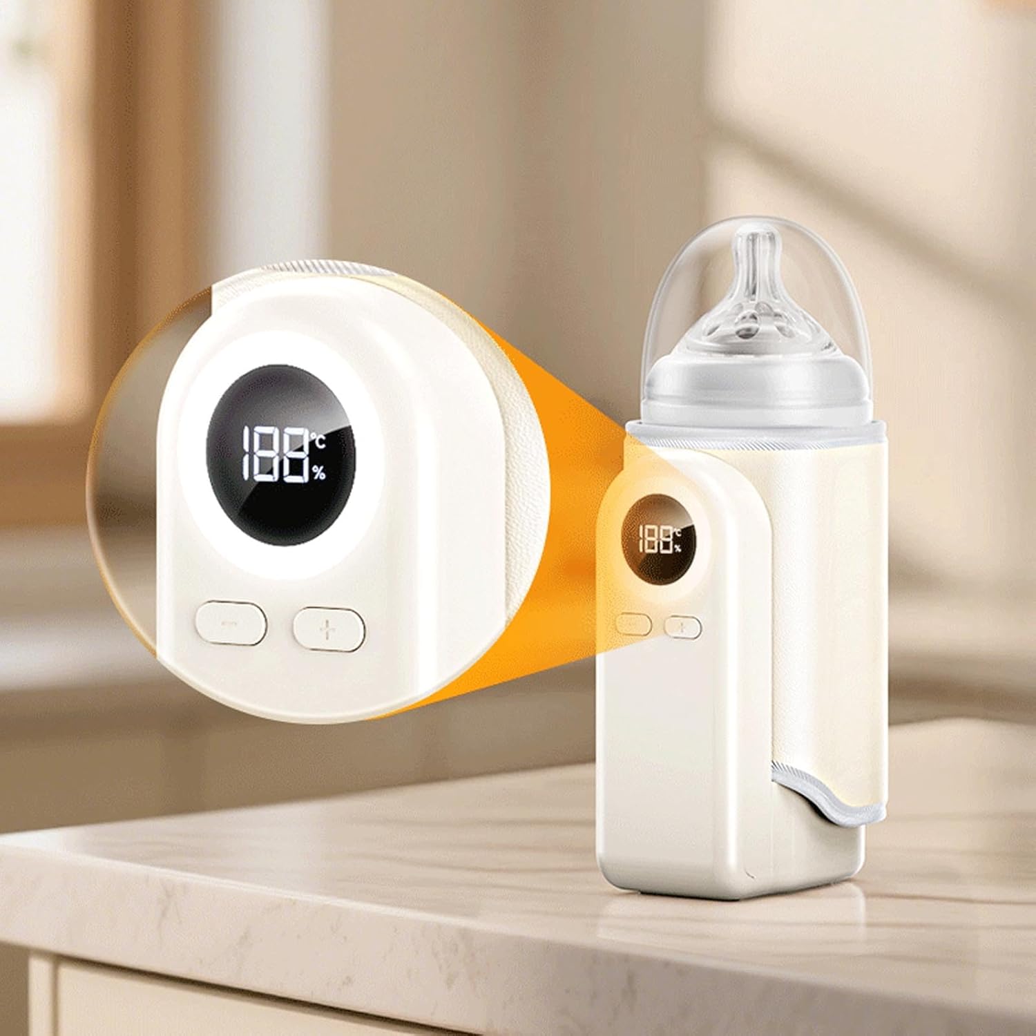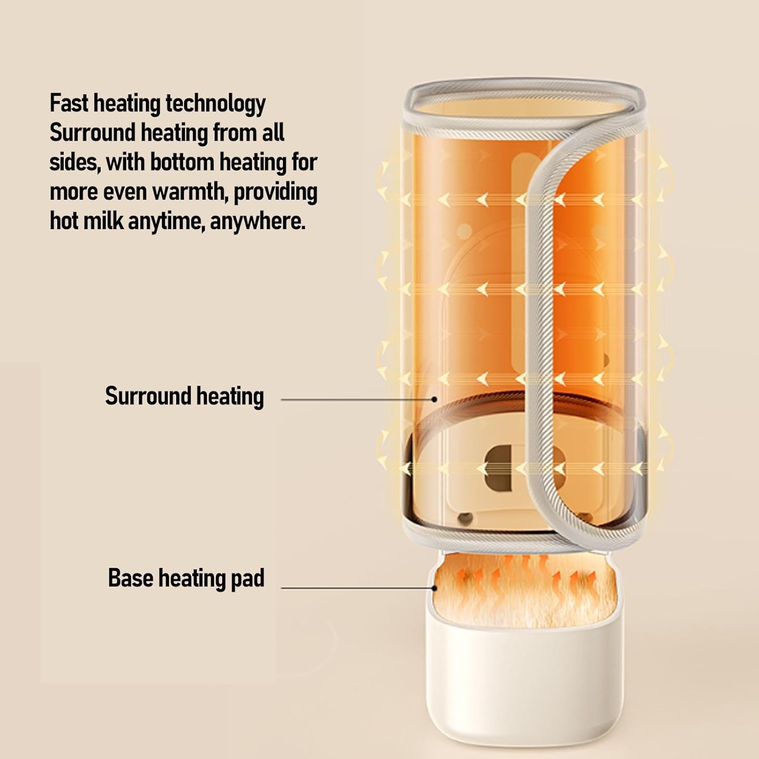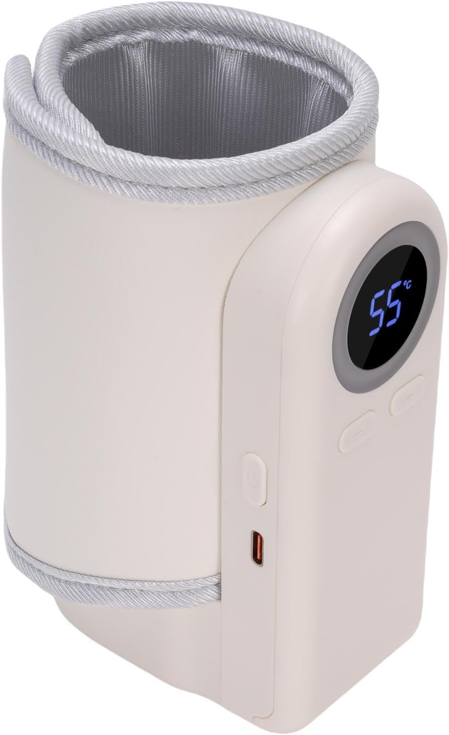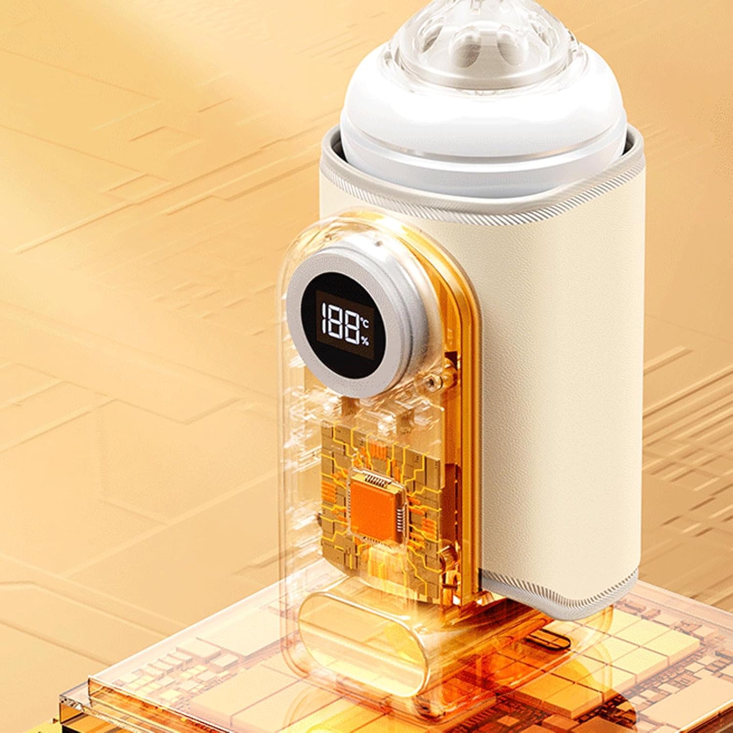 Este aquecedor de mamadeira portátil destaca-se pela sua bateria interna de alta capacidade de 10000mAh, permitindo que você aqueça o leite do seu filho sem depender de tomadas próximas. A estrutura combina tecido resistente e ABS, garantindo durabilidade e um toque suave que protege a mamadeira durante o uso.