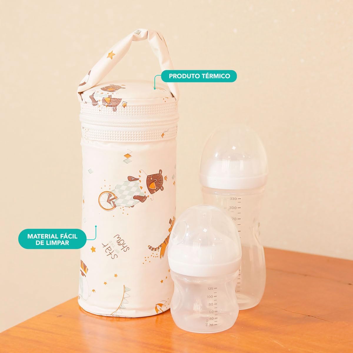 Porta Mamadeira Térmico Beniq Impermeável Bege Circus 1 Litro