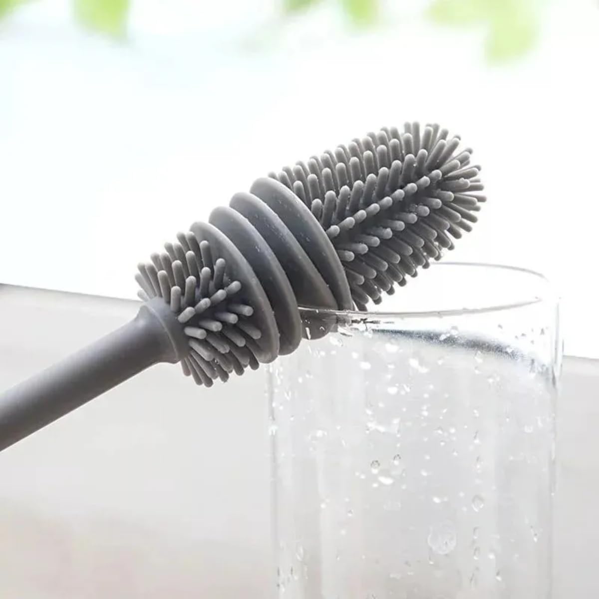 Esta escova de limpeza versátil conta com uma cabeça em silicone 360°, projetada para remover resíduos com precisão sem riscar ou danificar superfícies delicadas. O seu cabo extra firme proporciona firmeza total, facilitando o alcance no fundo de garrafas, mamadeiras e taças profundas.