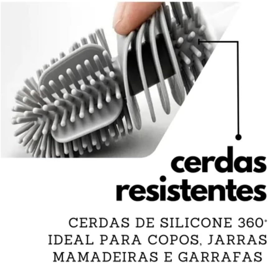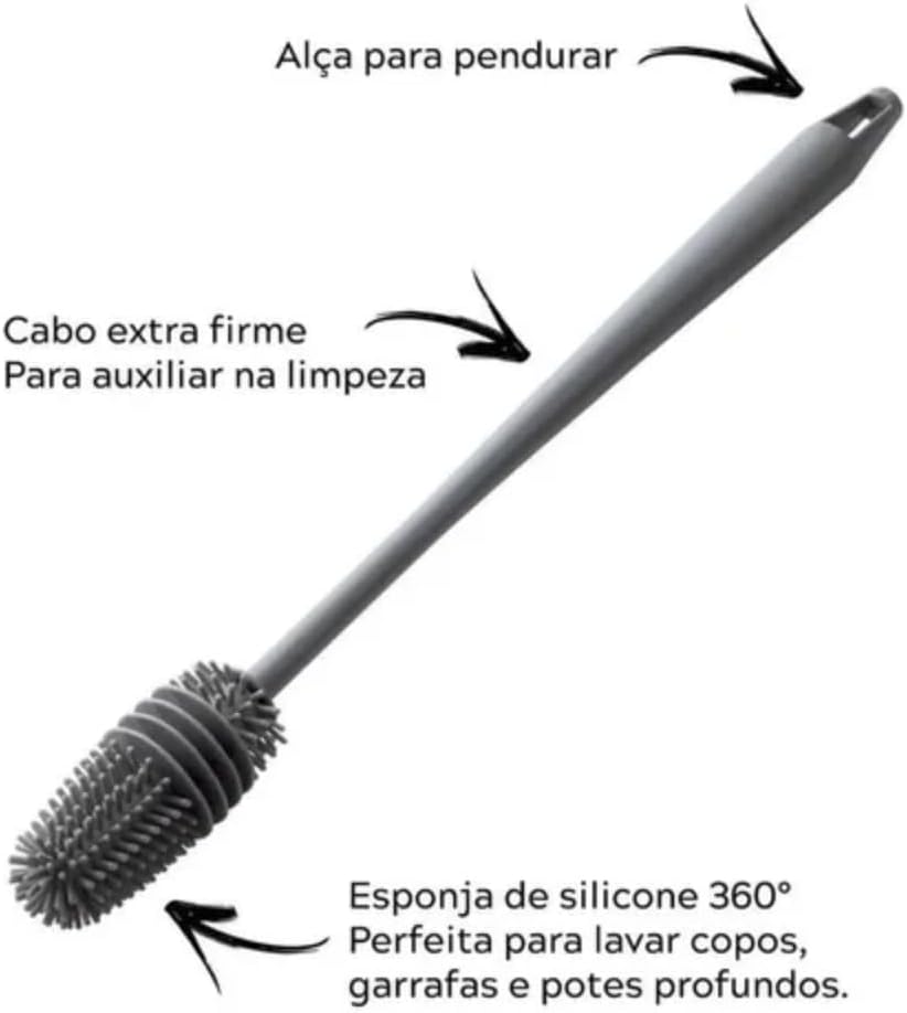Mantenha a higiene total dos seus utensílios com a escova de silicone para mamadeiras e garrafas. Projetada para oferecer uma limpeza profunda em recipientes de bocais estreitos, esta ferramenta garante praticidade e organização para a sua rotina diária na cozinha, cuidando dos seus objetos com delicadeza e eficiência.