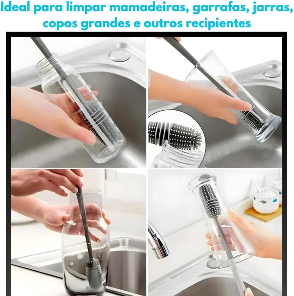 Este conjunto é a escolha perfeita para famílias, atletas ou qualquer pessoa que busque um método versátil de higienização. É indispensável para o uso diário em casa, para a limpeza de utensílios infantis e até para levar em viagens ou à academia, garantindo que suas garrafas e copos estejam sempre livres de sujeira acumulada.