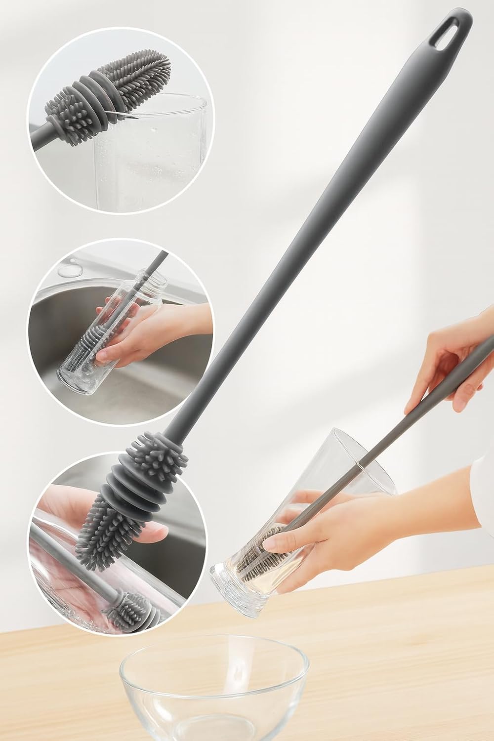 Este kit é perfeito para quem necessita de limpeza prática e eficiente para itens do cotidiano, como copos, taças, jarras, squeezes e mamadeiras. É a ferramenta indispensável para manter a rotina da cozinha sempre organizada e higiênica.