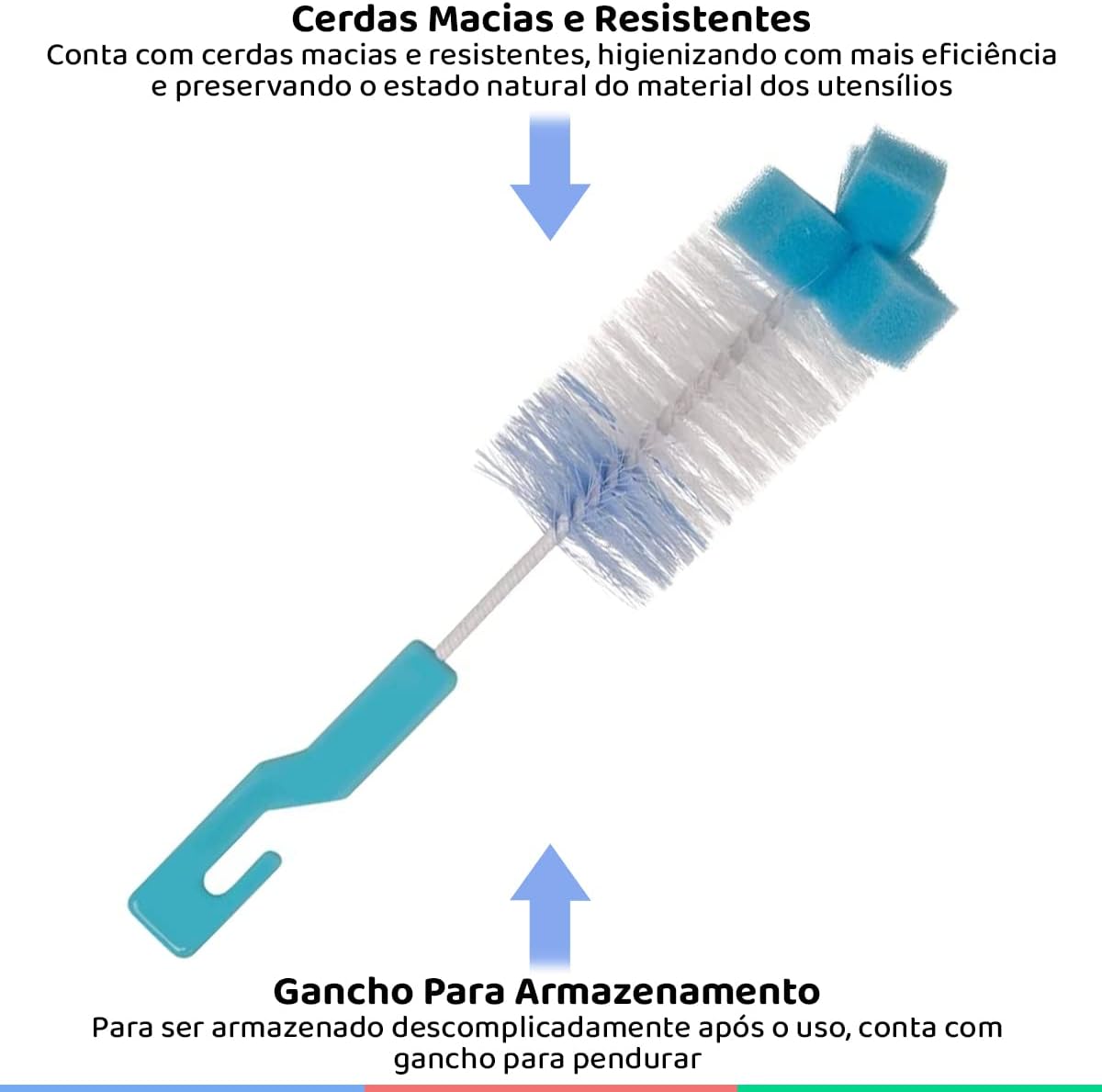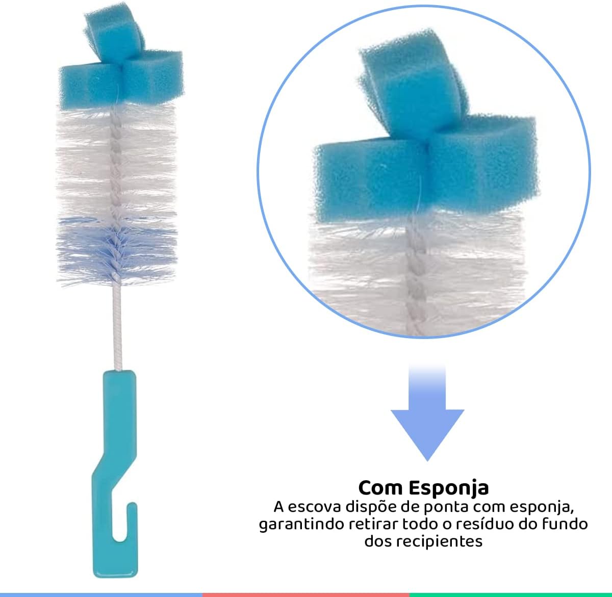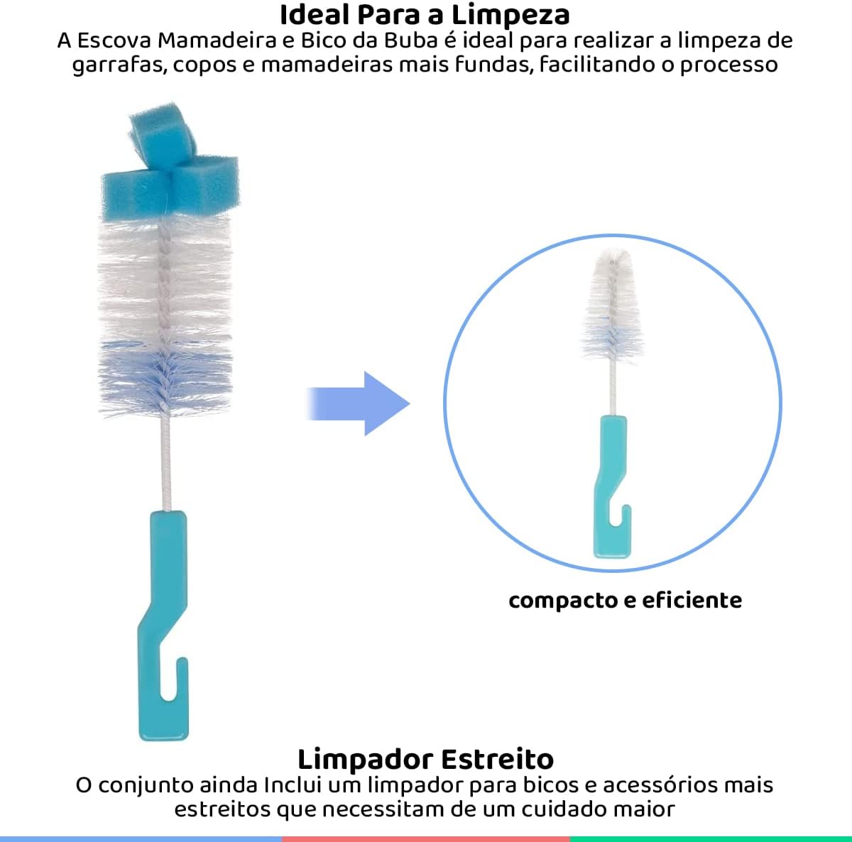 Este kit conta com um design inteligente que inclui uma esponja na ponta, tornando a higienização muito mais prática e eficiente. Com o uso destas escovas, você evita o acúmulo de sujeira, protegendo a saúde do seu bebê e prolongando a vida útil dos acessórios de alimentação.