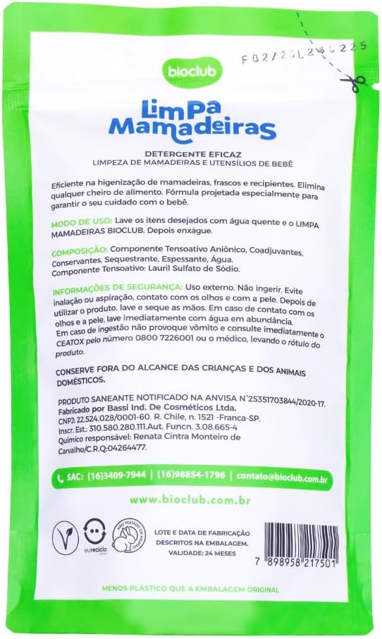 Escolher o refil limpa mamadeiras da BioClub representa uma alternativa econômica e sustentável, permitindo a reutilização de embalagens e reduzindo o impacto ambiental. A fórmula balanceada cuida dos materiais delicados das mamadeiras, prolongando a vida útil de cada item e mantendo a higiene necessária para o dia a dia.