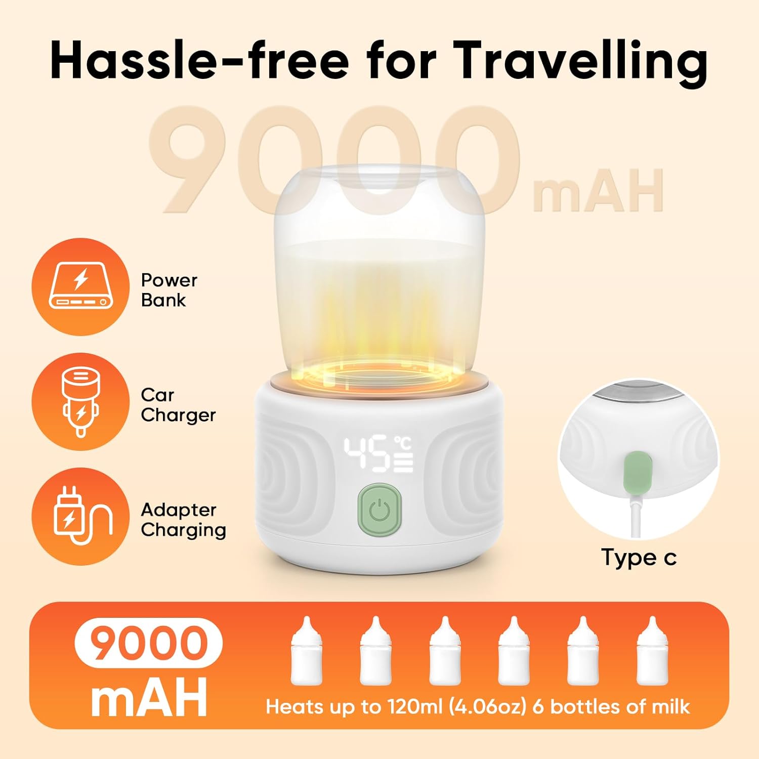 Este modelo se destaca pela versatilidade, sendo um aquecedor de mamadeira portátil projetado para proporcionar autonomia aos pais. Sua operação intuitiva permite aquecer o leite ou a água de forma rápida e segura, evitando os riscos do superaquecimento comum em métodos tradicionais.