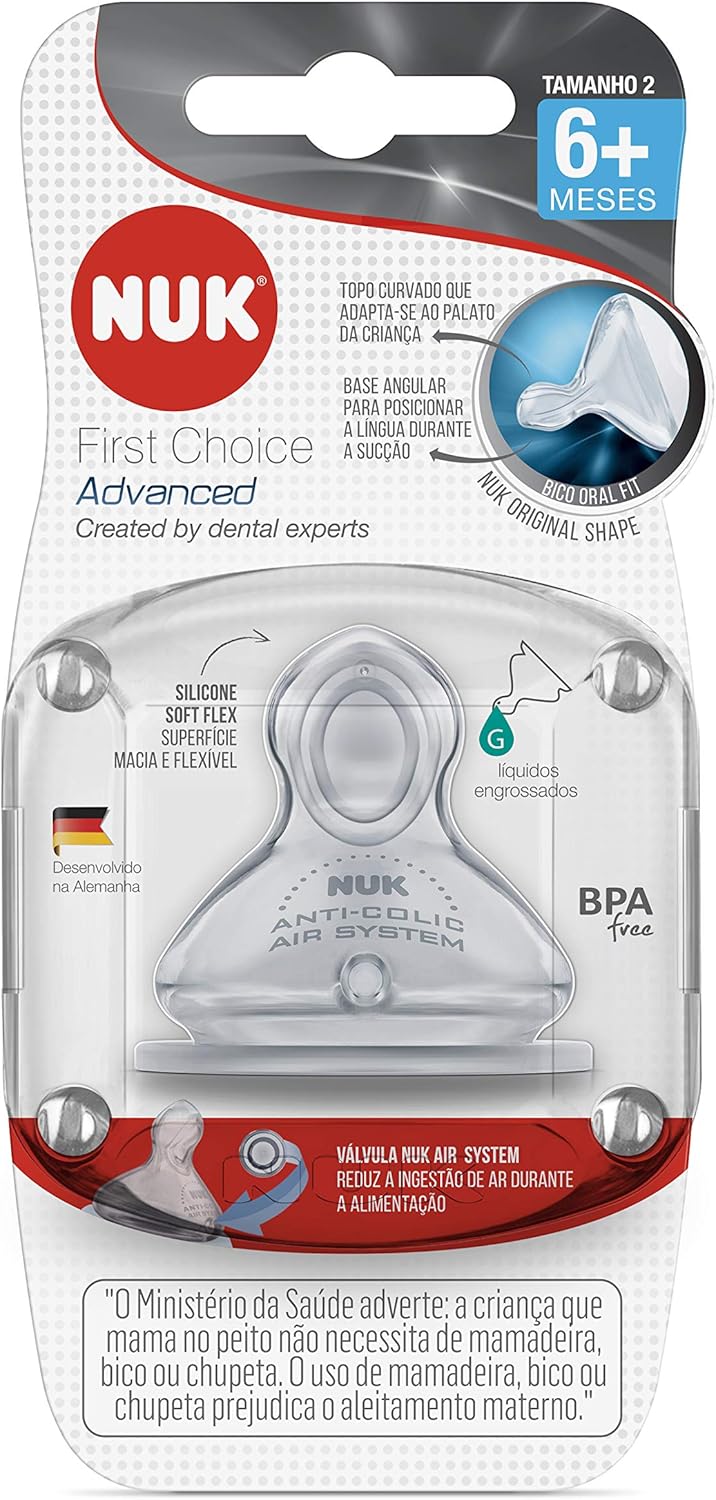 Desenvolvido em silicone transparente de alta durabilidade, o bico é um componente essencial da linha NUK e atende aos padrões de segurança para evitar o acúmulo de microrganismos. O pacote original possui 14,4 x 6,2 x 6 cm de dimensão para proteção total durante o transporte.