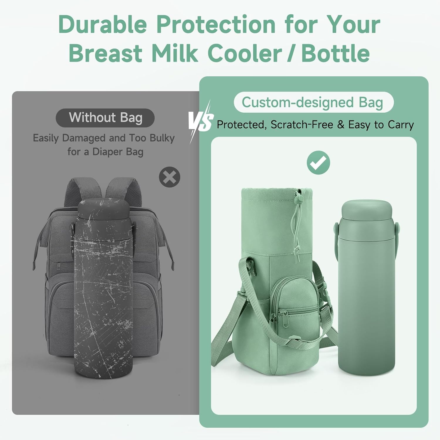 Produzida em poliéster de alta resistência e sarja de cavalaria, a bolsa térmica para leite materno HavenMinds combina durabilidade e elegância na cor verde. O interior é revestido com material isolante de folha de alumínio, garantindo eficiência térmica superior para o uso diário.