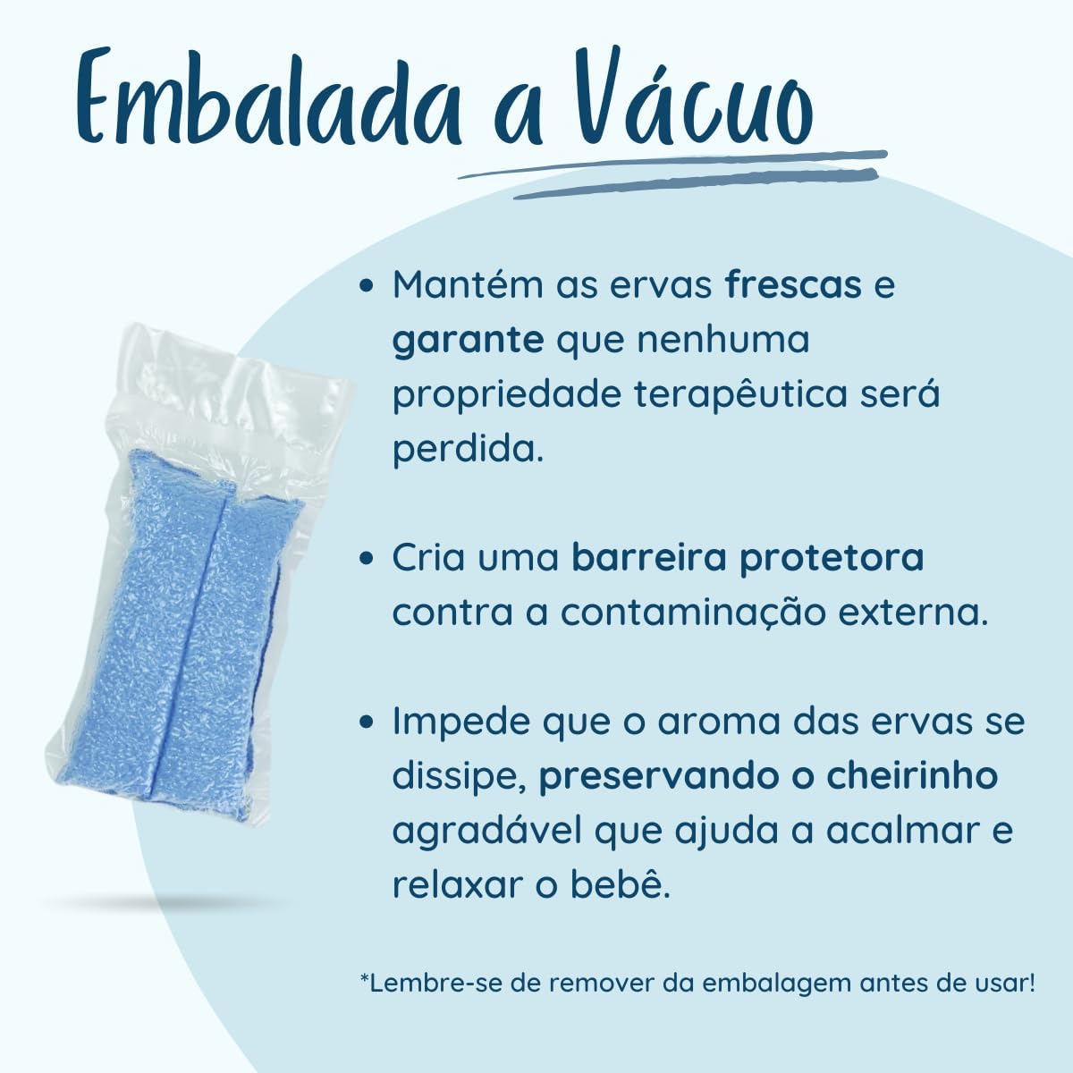 O grande diferencial deste produto é a combinação de lavanda, camomila, capim-limão e hortelã. Ao ser aquecida, a bolsa de ervas libera um aroma suave e propriedades terapêuticas que relaxam a musculatura abdominal do bebê, garantindo tranquilidade após as mamadas.