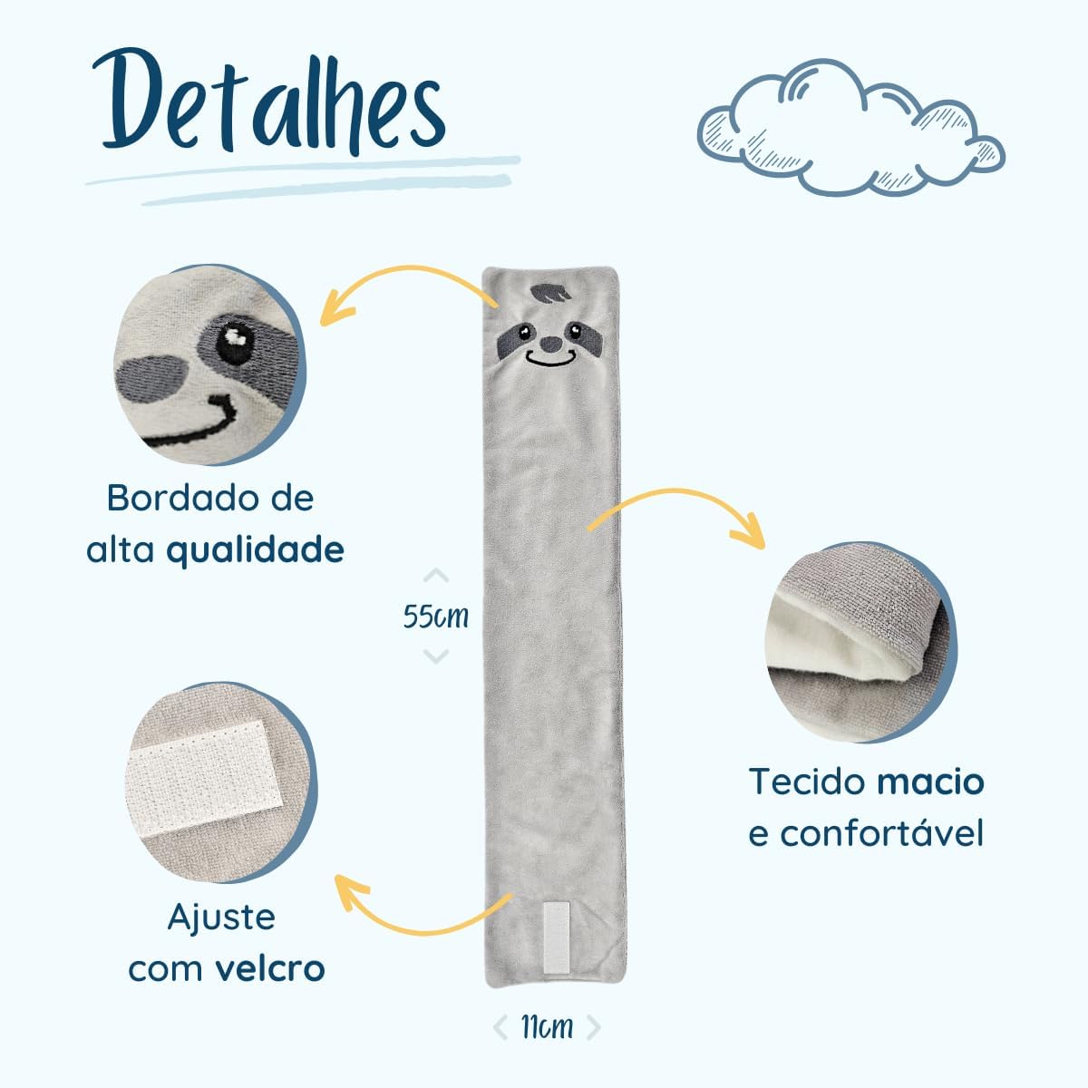 Desenvolvida com materiais de alta qualidade, a faixa possui composição em poliéster com forro 100% algodão, garantindo um toque macio na pele sensível do bebê. Suas dimensões de 11,5 x 55 cm facilitam o uso prático, sendo um item compacto e indispensável no enxoval.