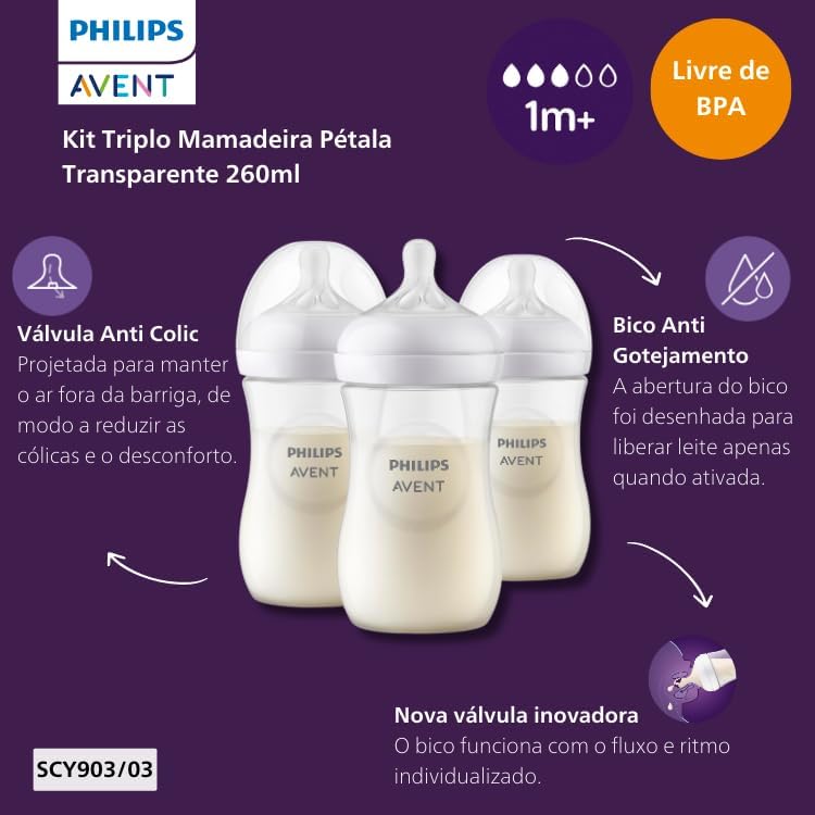 O Kit Triplo Mamadeira Pétala 3.0 da Philips Avent foi desenvolvido para oferecer ao seu bebê uma experiência de alimentação o mais próxima possível da amamentação natural. Graças à tecnologia inovadora, este conjunto é a escolha ideal para pais que buscam praticidade e segurança no dia a dia do seu filho.