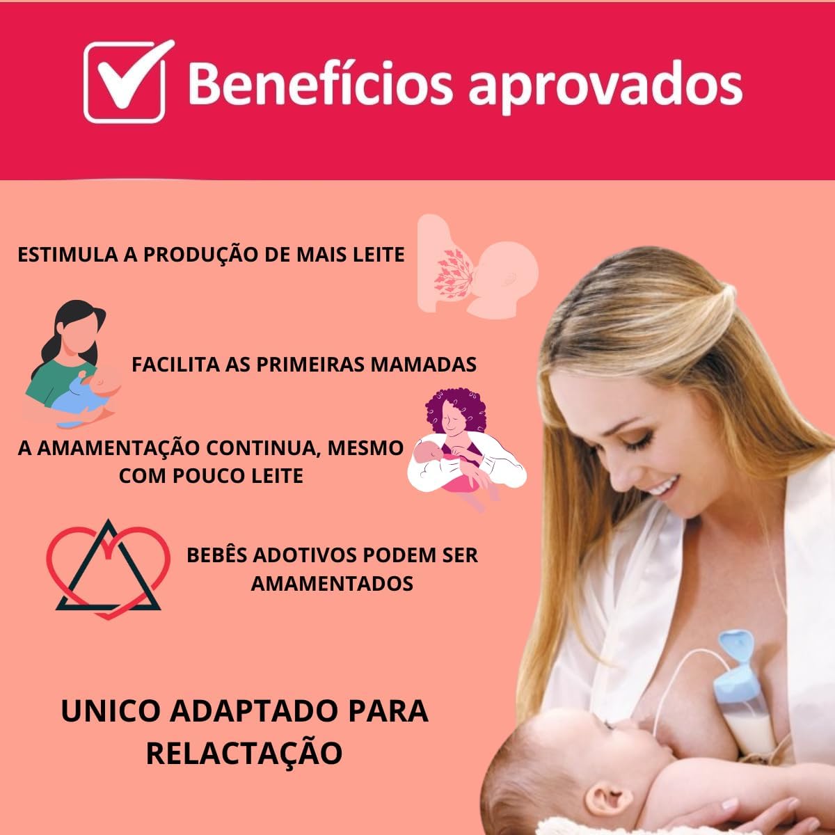 Este sistema de relactação e translactação foi criado para auxiliar em casos de baixa produção de leite ou na retomada do aleitamento materno. O uso do relactador permite que o bebê seja alimentado diretamente no seio, estimulando a produção natural e fortalecendo a conexão entre mãe e filho com praticidade e eficiência.