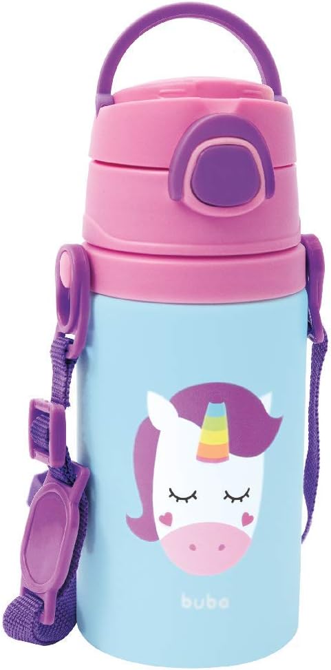 Indicada para crianças que precisam de uma opção prática para se hidratar fora de casa, a garrafinha de unicórnio é o acessório perfeito para levar à escola, parques ou viagens, mantendo a temperatura da bebida e evitando sujeiras.