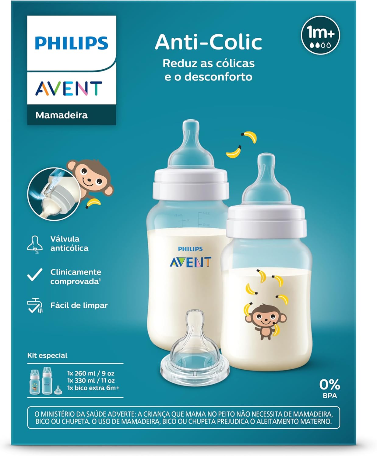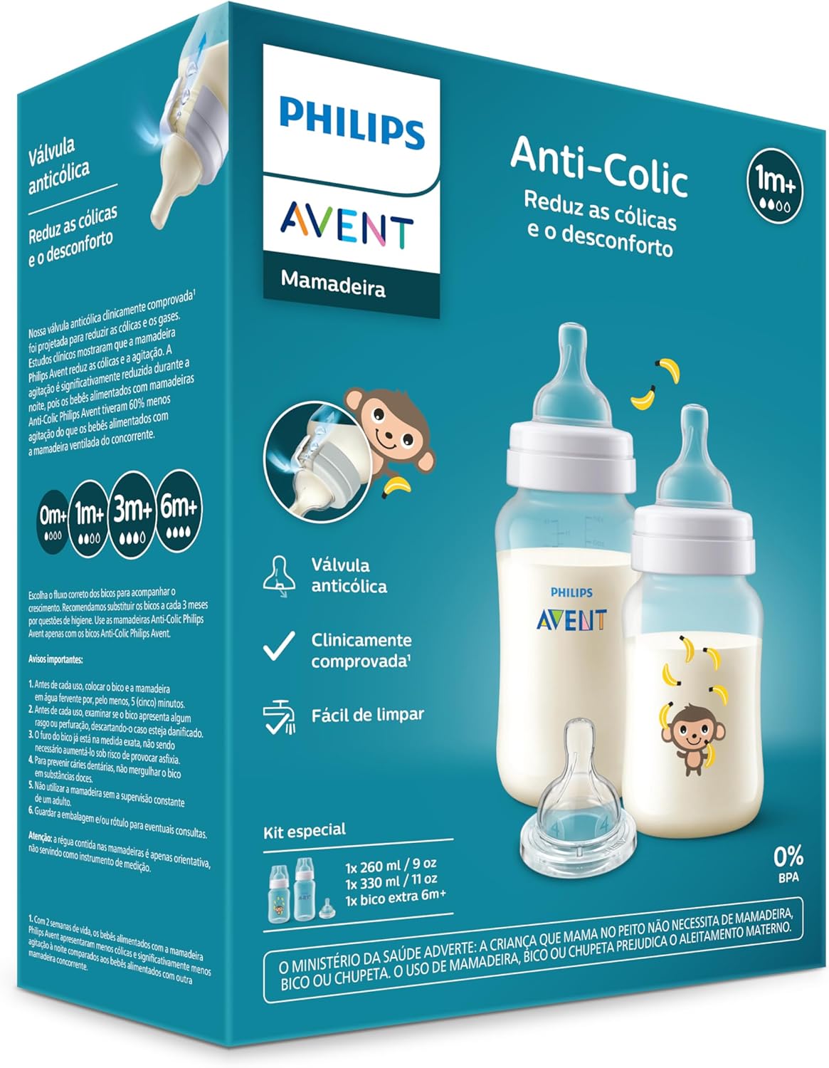 Este conjunto inclui unidades com capacidades de 260ml e 330ml, acompanhadas de bicos com fluxos específicos: Fluxo 2 (1 mês+), Fluxo 3 (3 meses+) e Fluxo 4 (6 meses+). Fabricadas em polipropileno resistente e silicone macio, as peças pesam apenas 201g no total, facilitando o transporte no dia a dia.