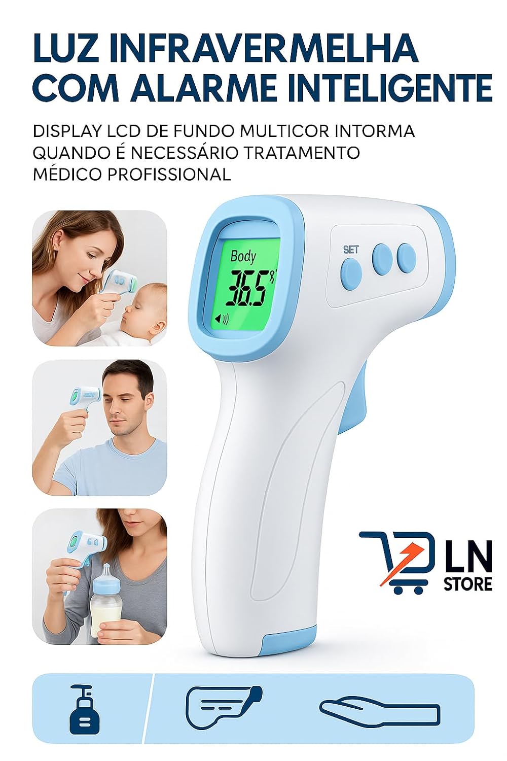 O Termômetro Infravermelho Digital 3 em 1 é o item essencial para pais que buscam agilidade nos cuidados com bebês, bem como para profissionais de clínicas e consultórios que necessitam de um instrumento higiênico, certificado e livre de contaminações cruzadas.