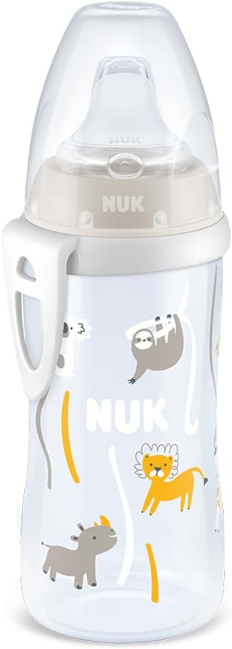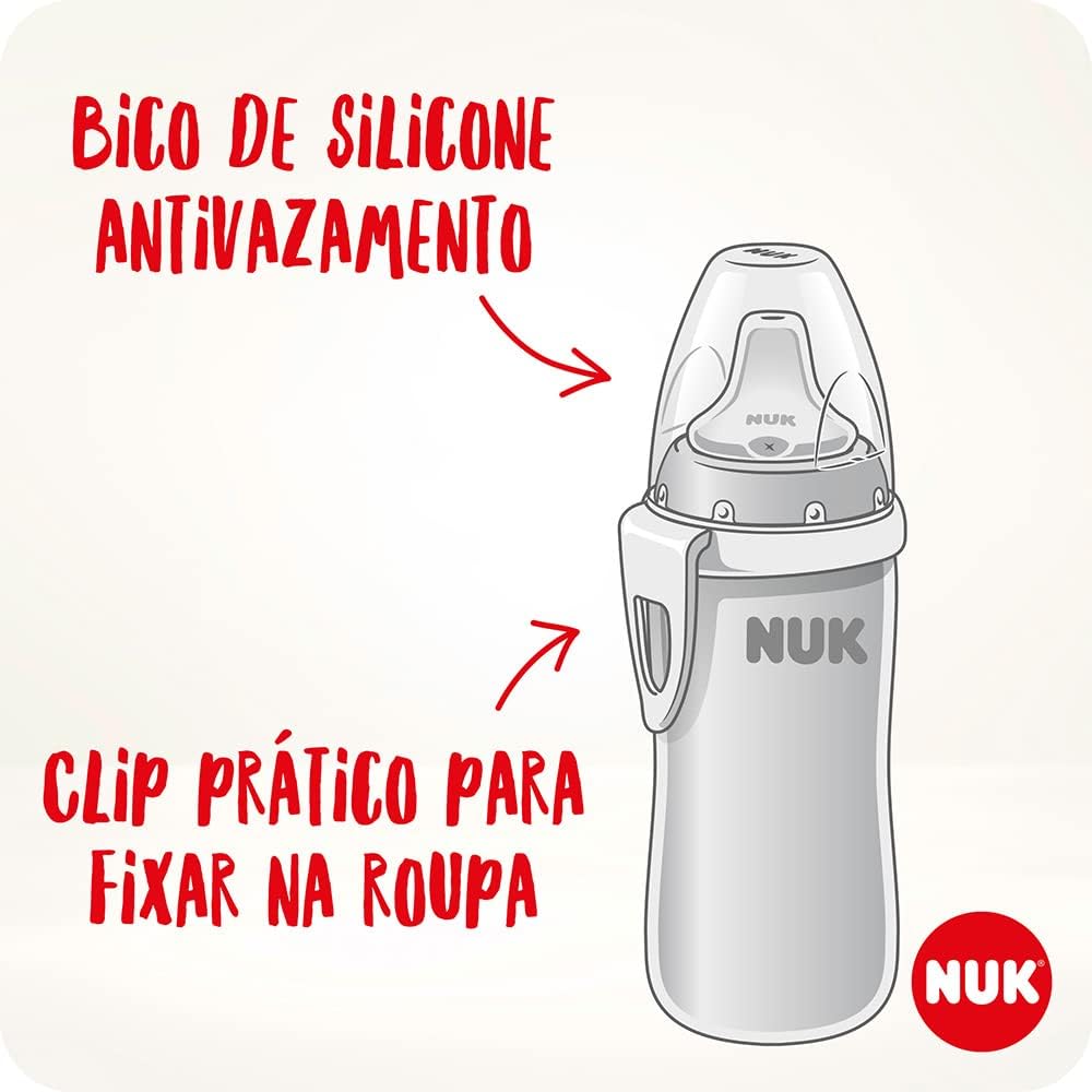 O copo possui um bico de silicone antivazamento com a válvula NUK Air System Anticólica, que reduz a ingestão de bolhas de ar, proporcionando maior conforto ao bebê. Seu formato leve e ergonômico facilita o manuseio pelas mãos das crianças, ideal para uso em passeios e viagens.
