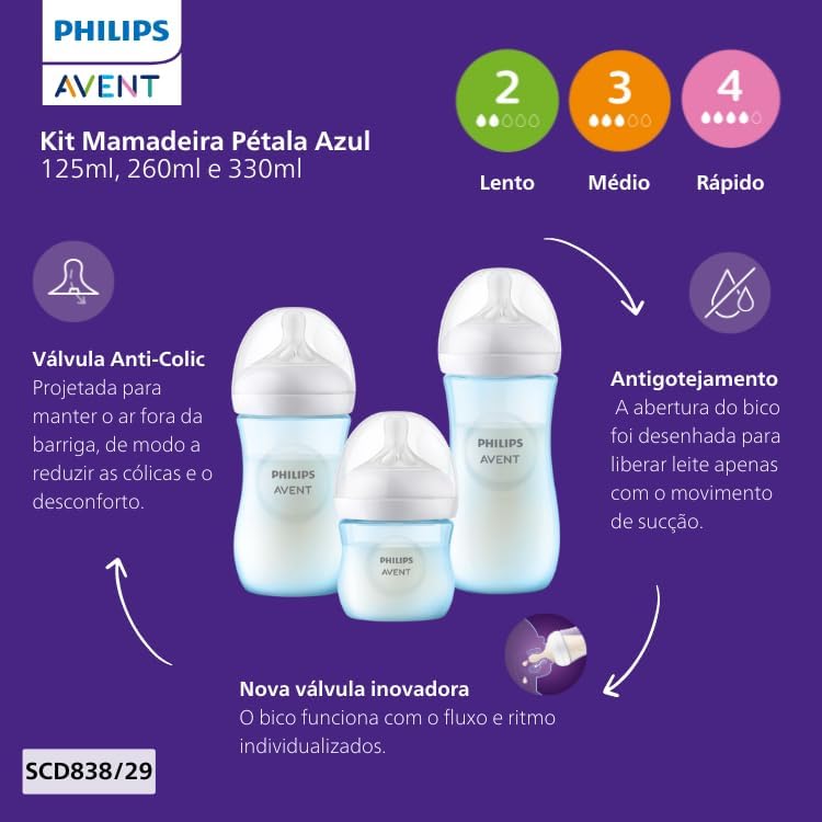 A mamadeira Avent Pétala 3.0 proporciona uma alimentação natural e segura para seu bebê, com design ergonômico e tecnologia avançada. Com a exclusiva tetina Natural Response, a mamadeira só libera leite quando o bebê suga ativamente, respeitando seu ritmo natural de sucção, deglutição e respiração. Esse sistema garante uma experiência muito mais próxima da amamentação no peito, evitando engasgos e promovendo conforto a cada mamada.