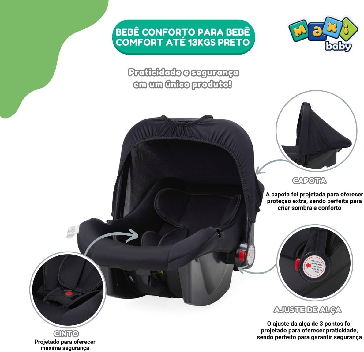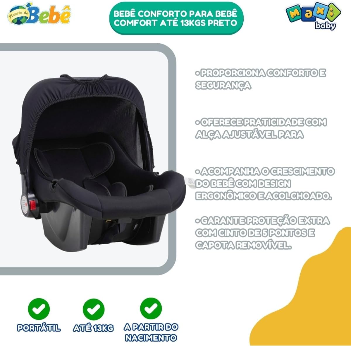 O bebê merece conforto e segurança com a cadeirinha automotiva Maxi Baby, ideal para crianças de 0 a 2 anos. Esta cadeirinha unissex conta com um **cinto de segurança de 3 pontos** e é recomendada para uso virado para trás, suportando até 13 quilogramas, garantindo a proteção essencial nos primeiros anos de vida.