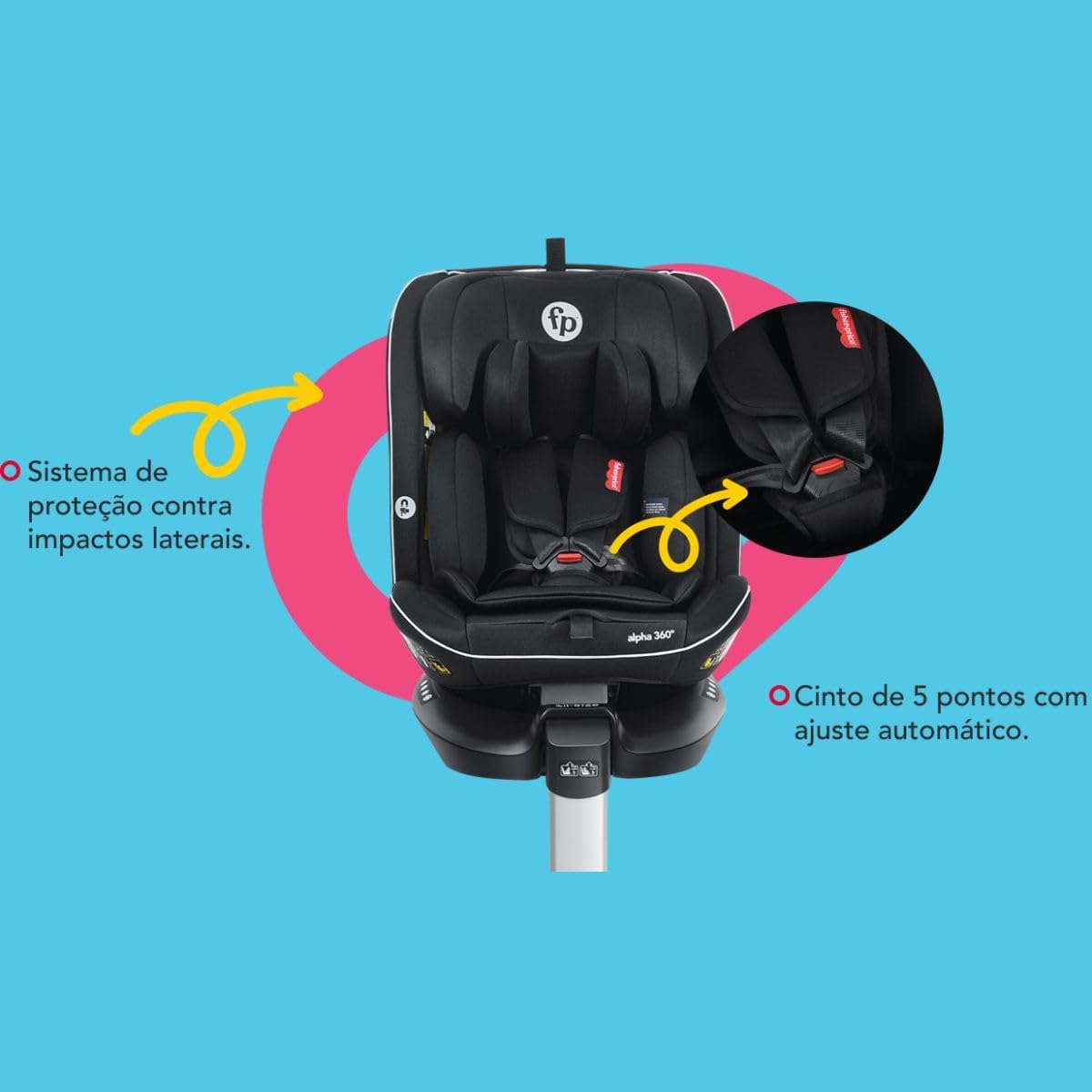 Indicada para famílias que buscam uma solução completa em segurança e conforto automotivo para crianças, a Alpha 360º Fisher-Price atende pais que valorizam praticidade, durabilidade e proteção avançada, sendo ideal para uso diário e viagens longas.