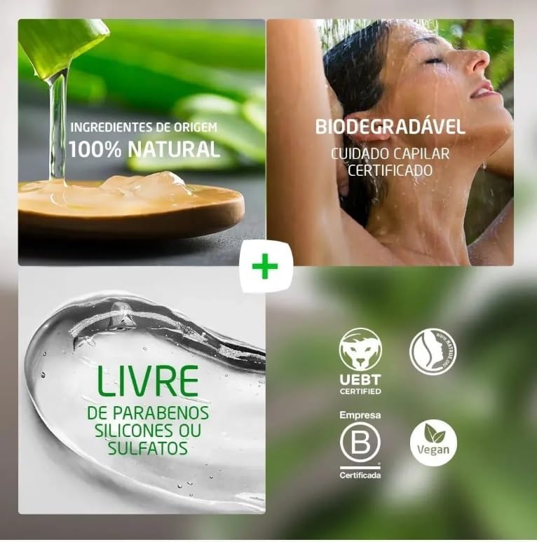Este shampoo hidratante com Aloe Vera é formulado sem silicones, sulfatos e parabenos, garantindo uma limpeza suave e respeitosa para todos os tipos de cabelo. Sua composição 100% natural oferece uma experiência de uso sustentável, aliando saúde capilar à preservação ambiental.