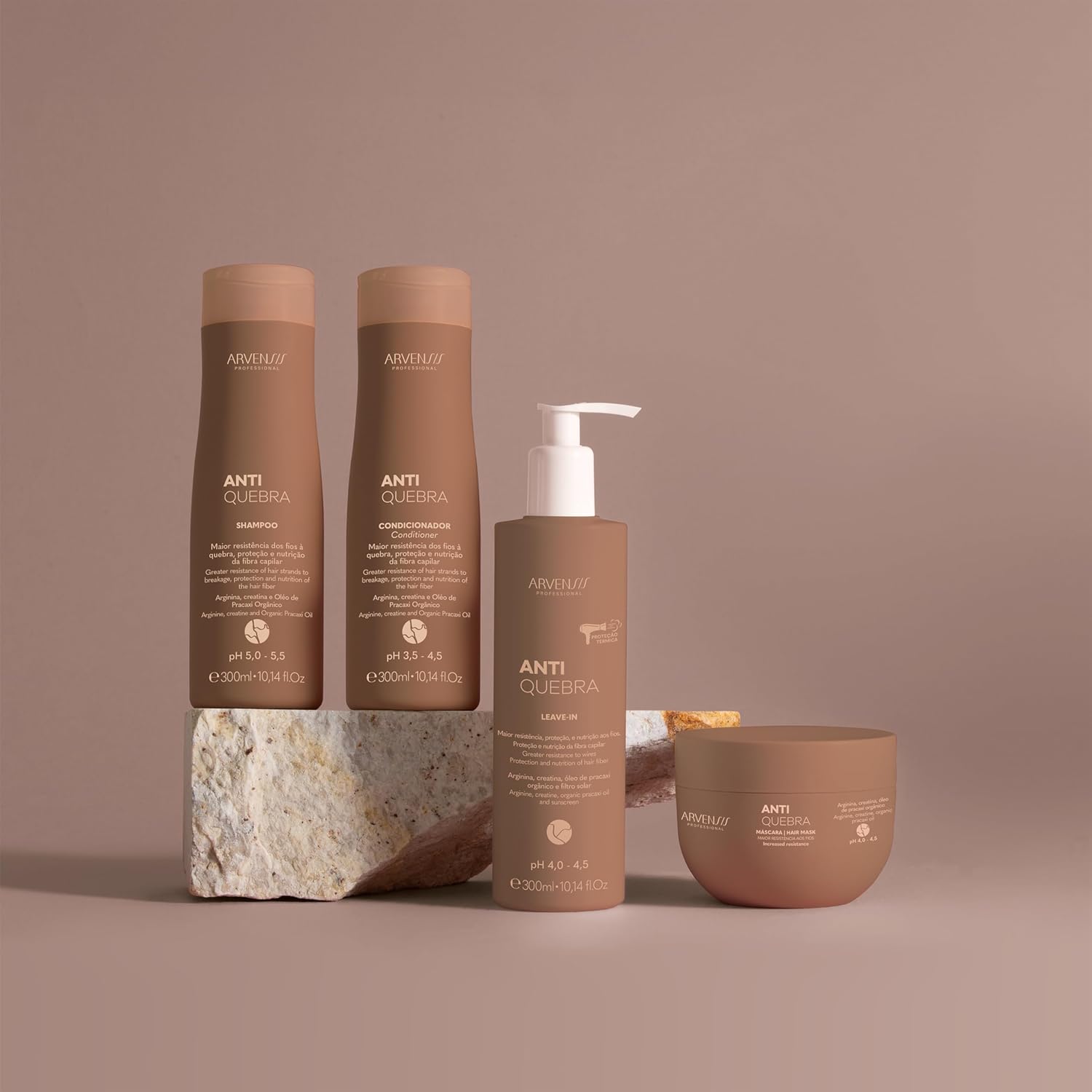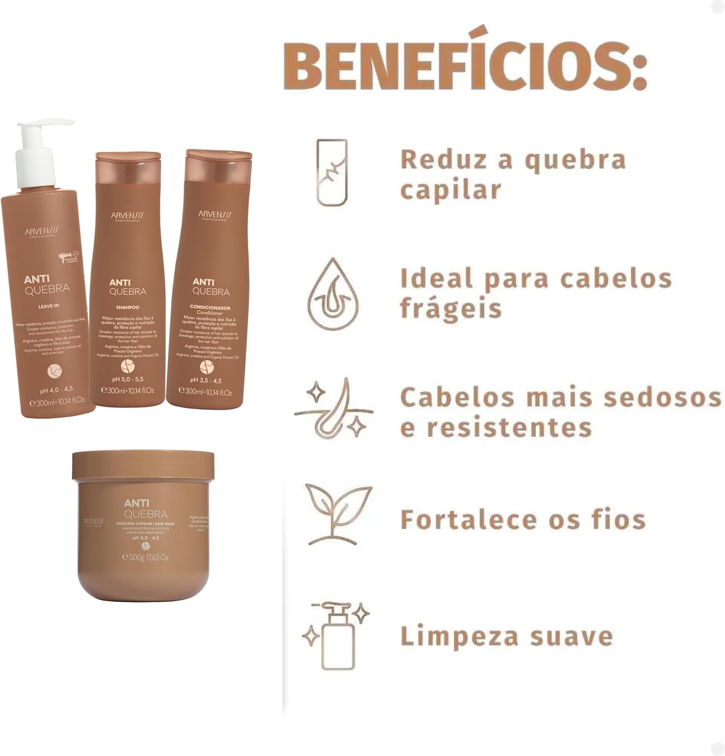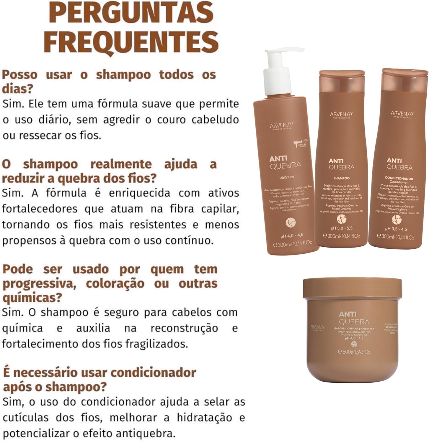O shampoo Anti Quebra Arvensis não acompanha condicionador na embalagem, devendo ser adquirido separadamente para um tratamento completo. A fórmula não utiliza componentes agressivos, garantindo segurança para uso frequente.