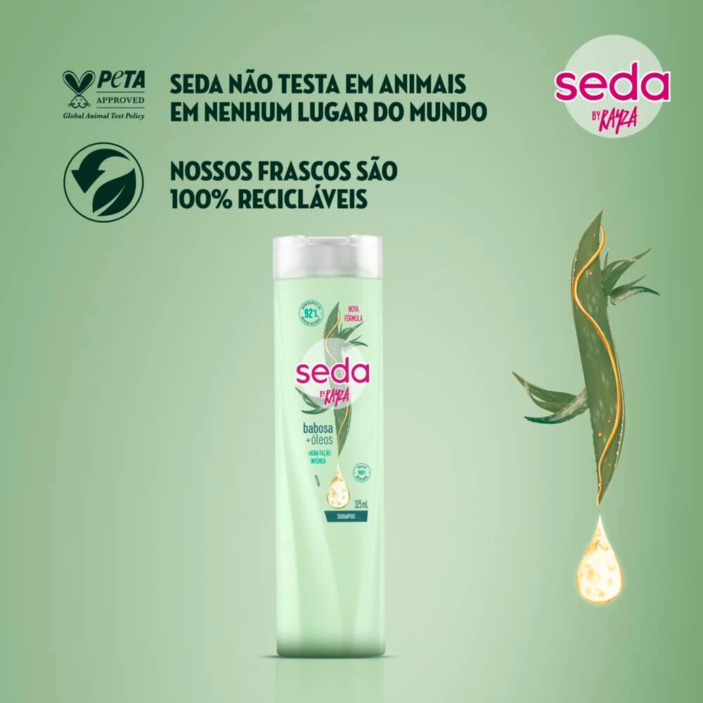Shampoo Seda By Rayza Babosa + Óleos oferece uma hidratação intensa para cabelos normais, combinando o poder da babosa com um mix nutritivo de óleos vegetais como coco, amêndoas e argan. Esta fórmula exclusiva contém no mínimo 92% de ingredientes de origem natural, é de baixo poo, livre de silicone e parabenos, ideal para quem busca fios super-hidratados, macios e brilhantes com benefícios naturais.