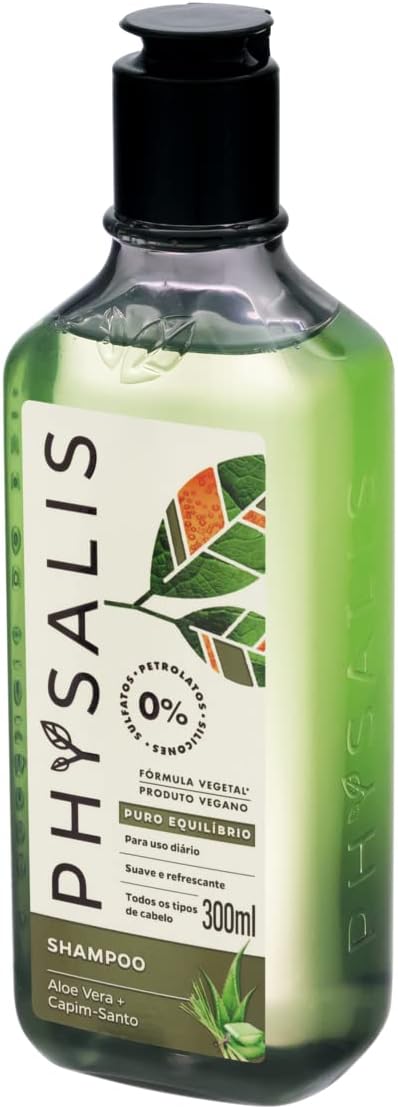 O shampoo Physalis é vegano e elaborado com ingredientes 100% naturais, como aloe vera e capim-santo, que garantem cuidados profundos e naturais para o cabelo. Além disso, sua fórmula livre de petrolatos, sulfatos e silicones promove uma limpeza eficaz sem agredir, preservando a saúde dos fios e do couro cabeludo. A combinação desses elementos também traz o benefício do frescor e do perfume suave que tornam seu banho ainda mais agradável.