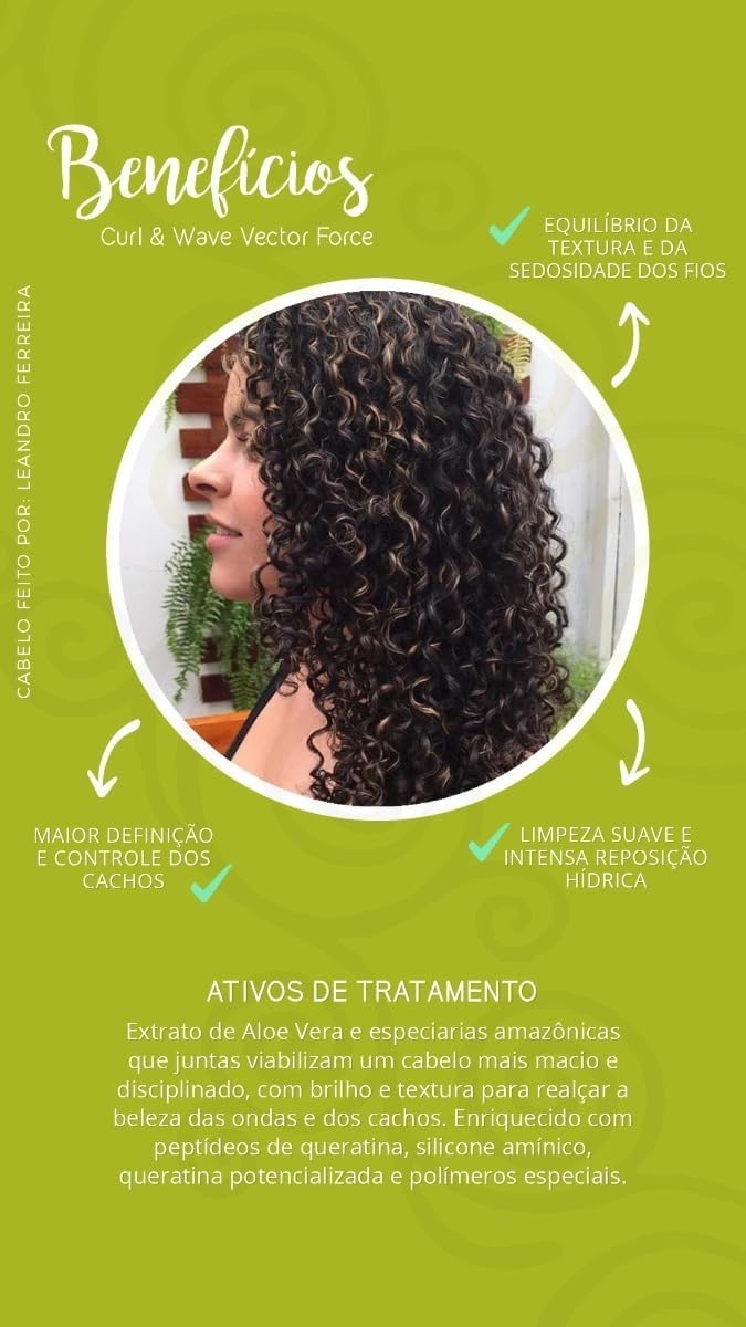 O Vector Force Conditioner é a solução ideal para quem busca tratamento especializado em cabelos cacheados e crespos. Com uma formulação que une fitoterapia cosmética e tecnologia, este condicionador para cabelos cacheados garante a reposição lipídica essencial para fios mais resistentes e definidos.