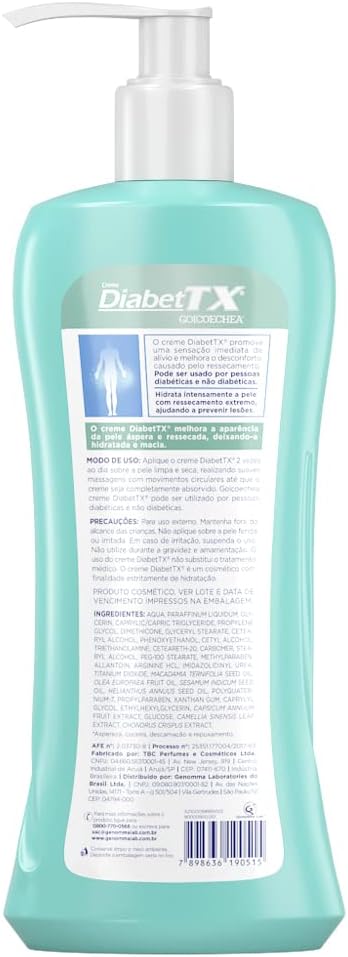 O DiabetTX Creme contém uma fórmula exclusiva que foi rigorosamente testada na pele de diabéticos, garantindo tolerância e cuidado para quem possui condições cutâneas mais delicadas. É o aliado perfeito para manter a hidratação diária de forma profunda e duradoura.