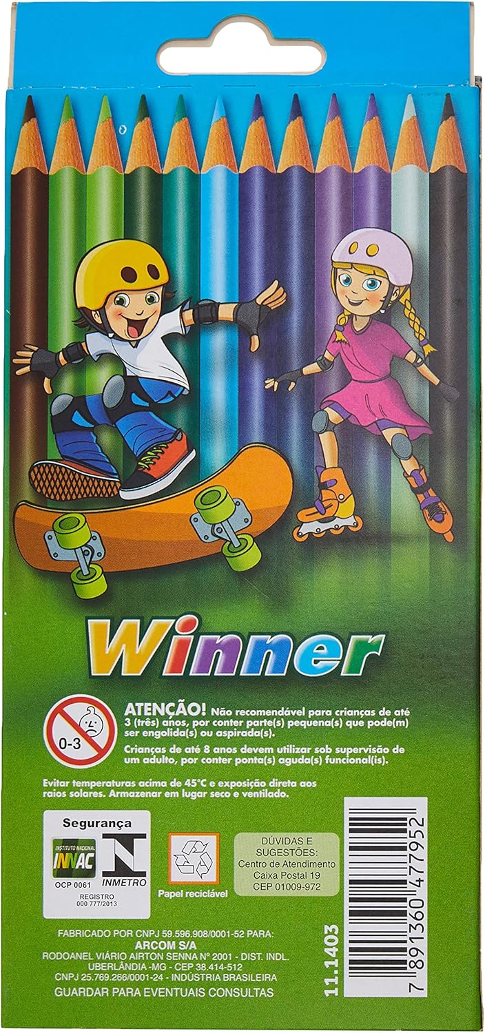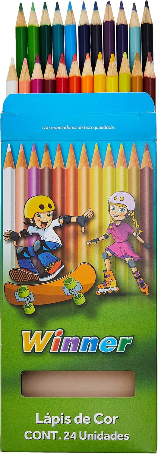 Lápis de Cor Winner 24 Cores Grande Pigmentação Intensa