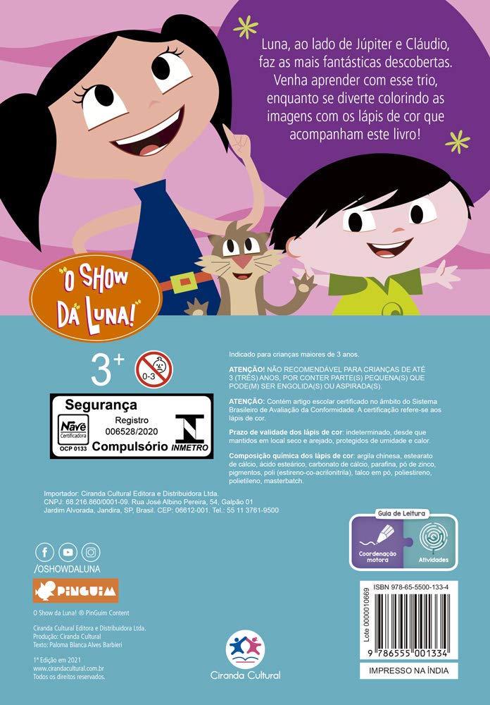 Para tornar a experiência completa, este livro de colorir do Show da Luna acompanha um conjunto exclusivo de lápis de cor. Isso permite que os pequenos artistas deem vida às cenas favoritas, desenvolvendo a coordenação motora fina e a expressão criativa durante a leitura.