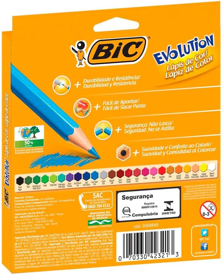 O lápis de cor BIC Evolution é a escolha ideal para quem busca qualidade e durabilidade em seus projetos artísticos ou materiais escolares. Com um conjunto de 24 cores vibrantes, este kit oferece excelente cobertura e intensidade, garantindo resultados profissionais em cada traço realizado.