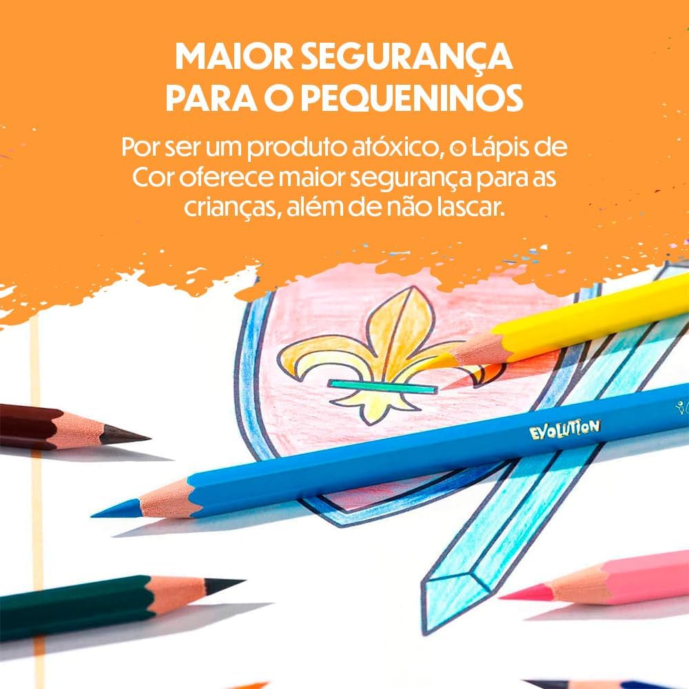 Além da durabilidade superior, o corpo do lápis apresenta um design canelado que oferece uma pegada mais firme e confortável. As cores vivas e intensas possuem um alto poder de pigmentação, tornando este produto perfeito tanto para colorir desenhos detalhados quanto para preencher grandes áreas com facilidade.