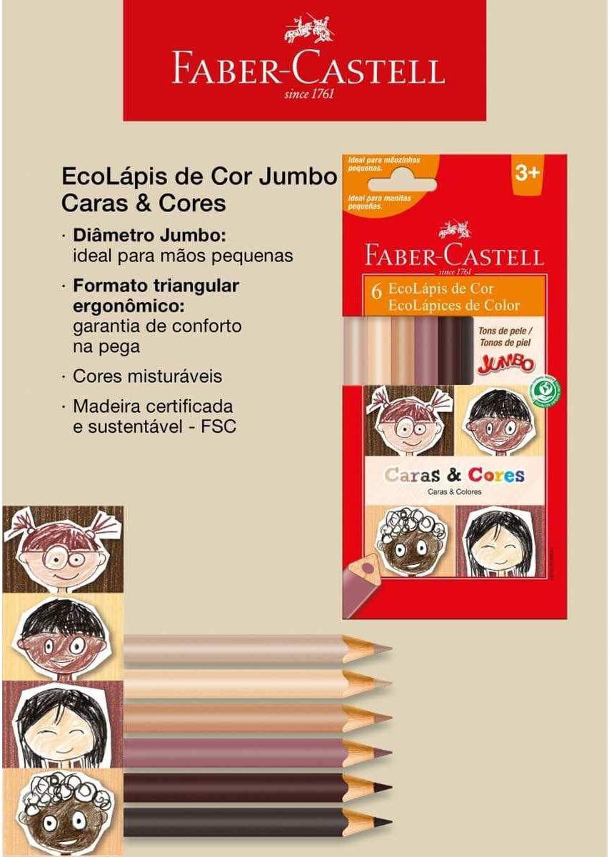 O conjunto de EcoLápis de Cor Jumbo Caras & Cores é a escolha ideal para incentivar a expressão artística e a valorização da diversidade desde cedo. Desenvolvido com 6 tons de pele exclusivos e misturáveis, este kit celebra as diferenças de forma lúdica e educativa.