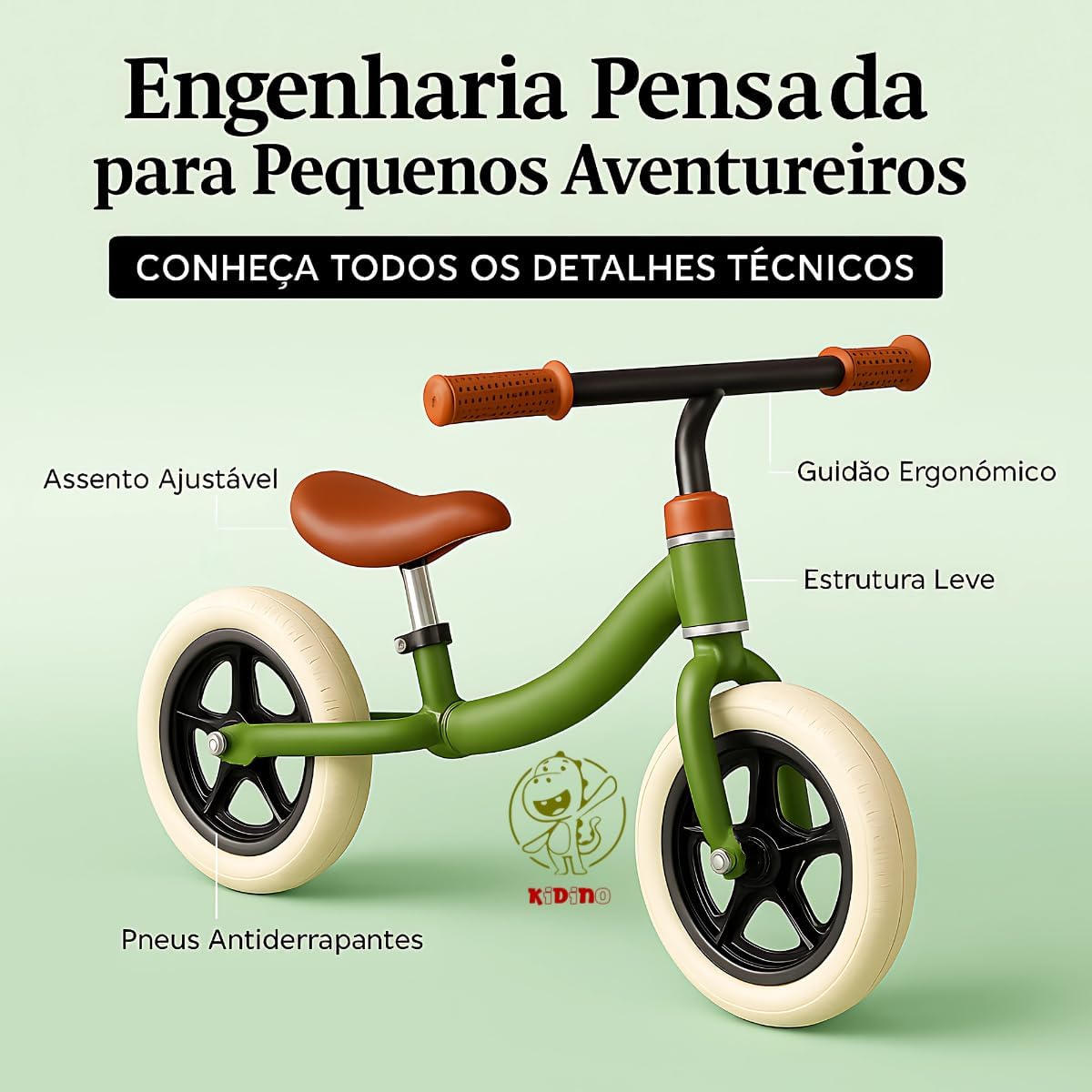 A bicicleta infantil sem pedal da Kidino, modelo KB115, é a escolha ideal para desenvolver o equilíbrio e a coordenação motora dos pequenos com toda a segurança necessária. Projetada para proporcionar uma introdução suave ao ciclismo, esta bike estimula a autoconfiança de forma gradual e lúdica.