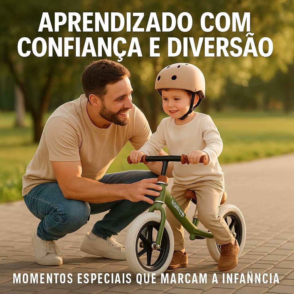 Esta bicicleta infantil sem pedal se destaca pela estrutura robusta em alumínio, que garante um produto leve de apenas 2,06 kg, facilitando o manuseio e o transporte pelos pais. O chassi resistente oferece durabilidade superior para acompanhar as aventuras das crianças pequenas.