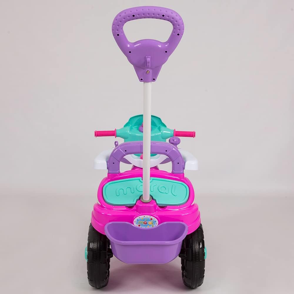 O Triciclo Baby City Maral é a escolha ideal para acompanhar o desenvolvimento da sua filha com conforto e segurança. Com um design moderno nas cores rosa, verde, branco e lilás, este veículo versátil transforma cada passeio em uma aventura inesquecível, adaptando-se perfeitamente ao crescimento da criança desde os 9 meses até os 5 anos de idade.