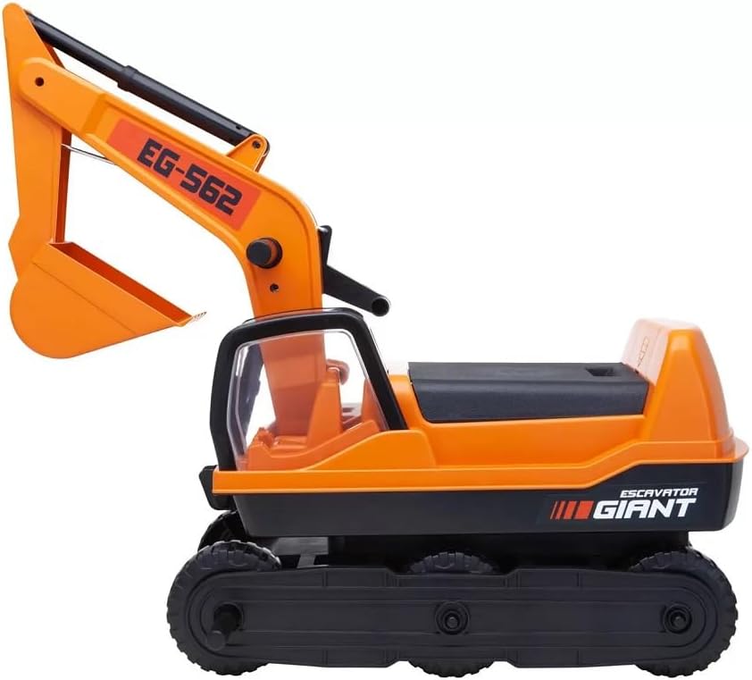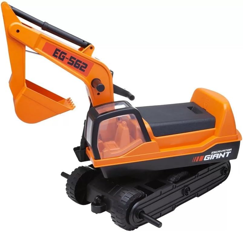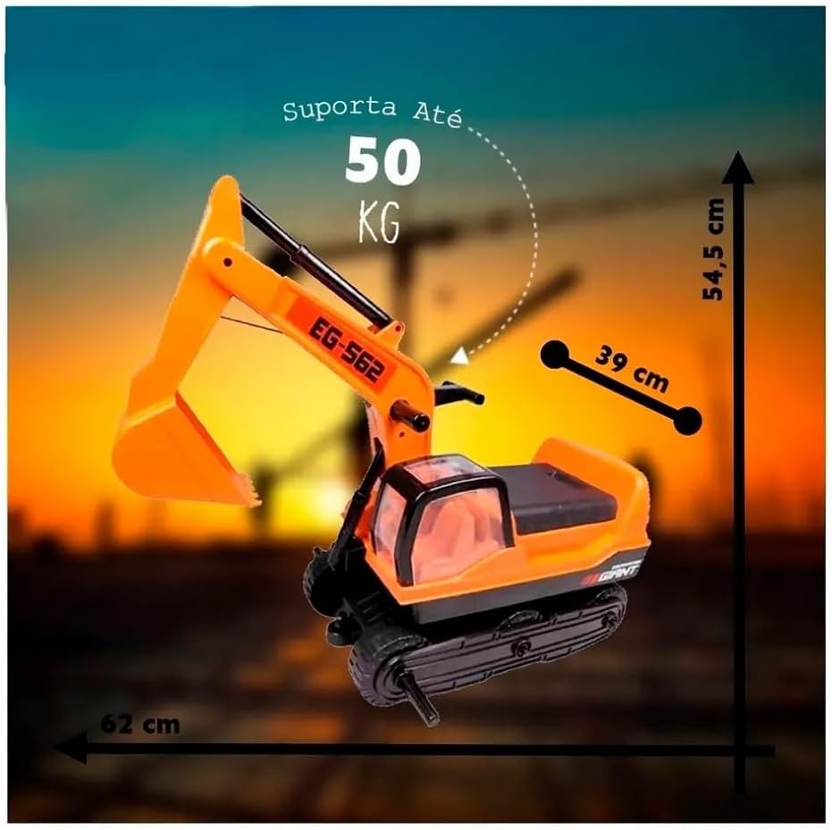 O Trator Giant Escavator suporta um peso máximo de até 50 kg, proporcionando segurança para crianças entre 36 meses e 8 anos de idade. Suas dimensões são de 62 x 39 x 54,5 cm, com um peso total de 15,1 kg, o que confere a estabilidade necessária para o uso recreativo.