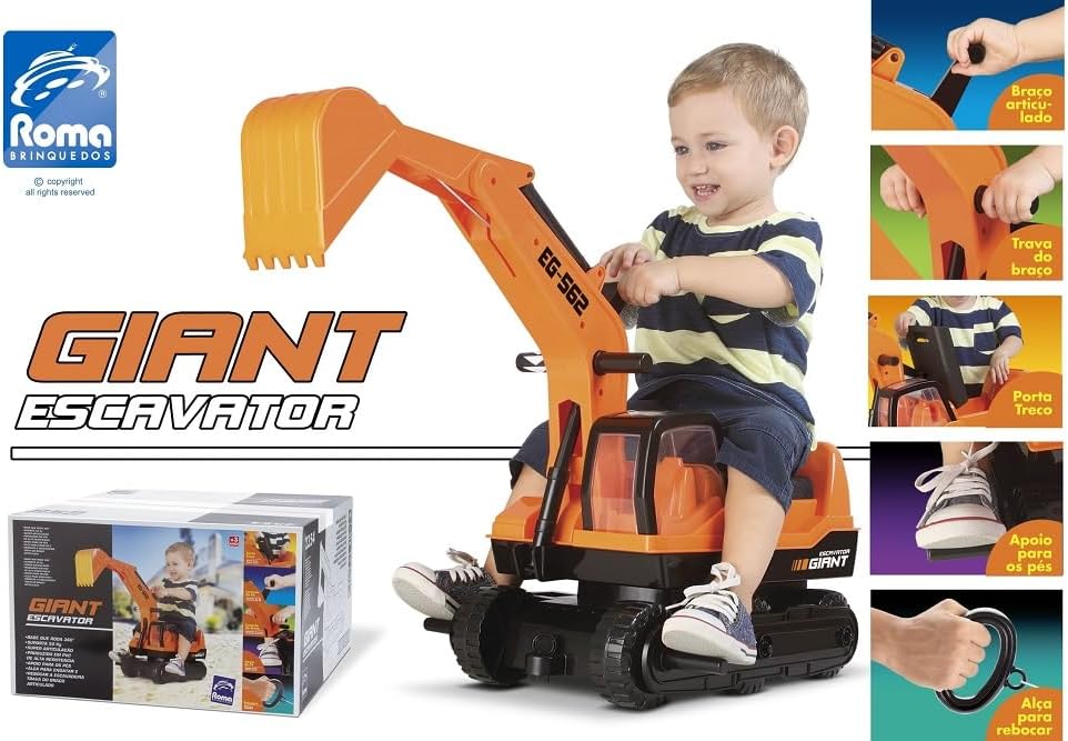 O Trator Giant Escavator da Roma Jensen é o brinquedo ideal para crianças que buscam aventura e diversão em grande escala. Com design robusto e funcional, este trator permite que os pequenos explorem cenários imaginários com total segurança e realismo durante as brincadeiras ao ar livre ou em ambientes internos.