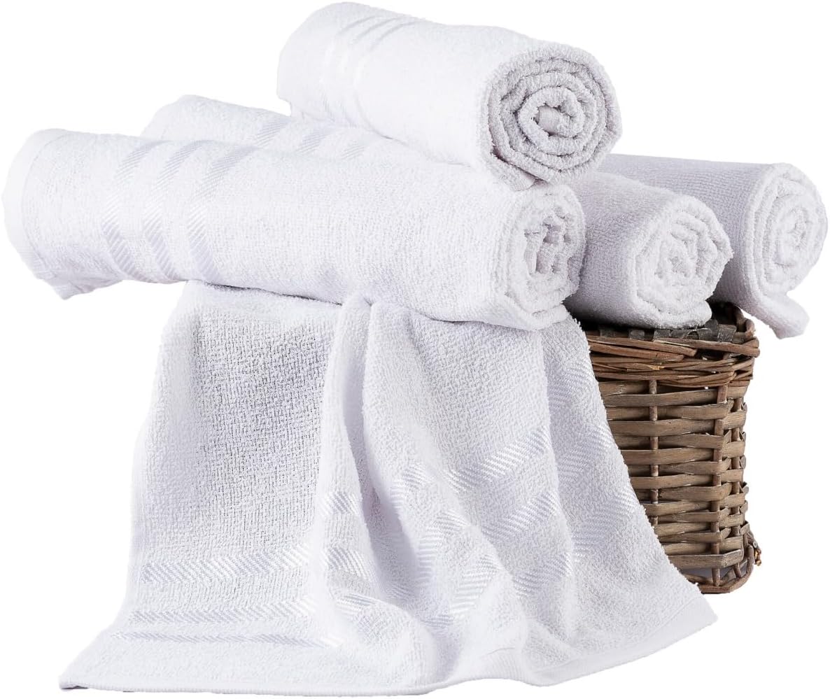 O conjunto contém cinco unidades de toalhas na cor branca. Por ser um produto de algodão, recomenda-se seguir as orientações padrão de lavagem para preservar a maciez e a capacidade de absorção do tecido por toda a vida útil das peças.
