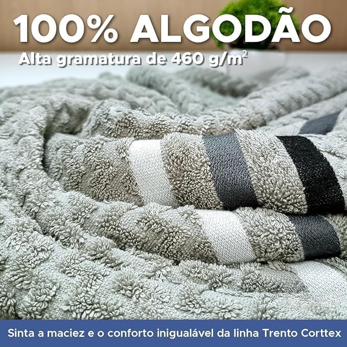 Transforme seu momento pós-banho em uma experiência de spa com a toalha banhão Trento. Desenvolvida para oferecer o máximo de conforto, esta peça une sofisticação e funcionalidade, sendo a escolha ideal para quem busca uma toalha de algodão de alta qualidade que decora o ambiente com elegância e refinamento.