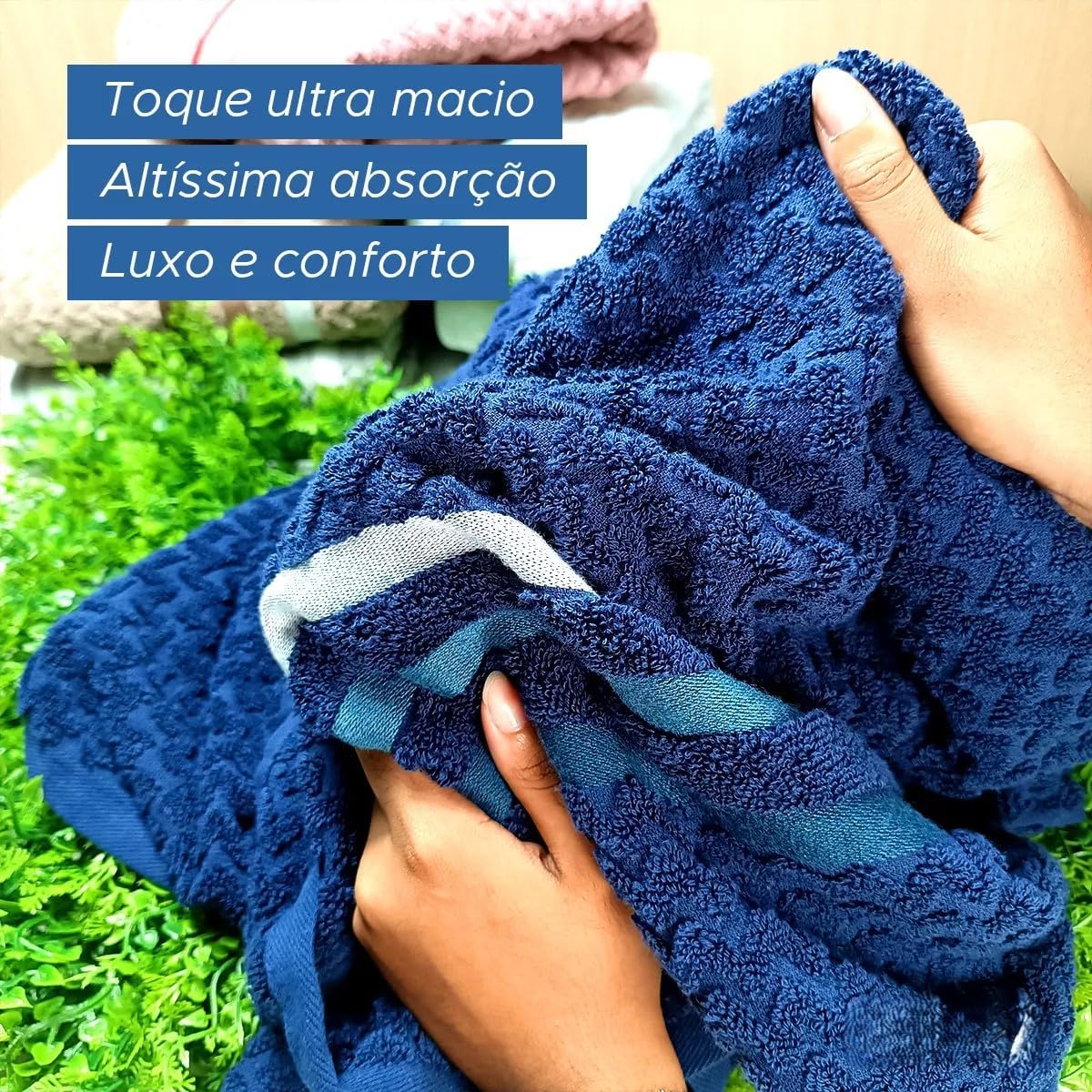 Pensada para a praticidade do dia a dia, a toalha já vem pré-lavada e pré-encolhida, o que evita deformações ou encolhimento após as lavagens domésticas. Com uma gramatura de 450g/m², ela possui um volume acentuado que resulta em uma absorção eficiente, permitindo que você se seque de forma rápida e muito mais confortável.