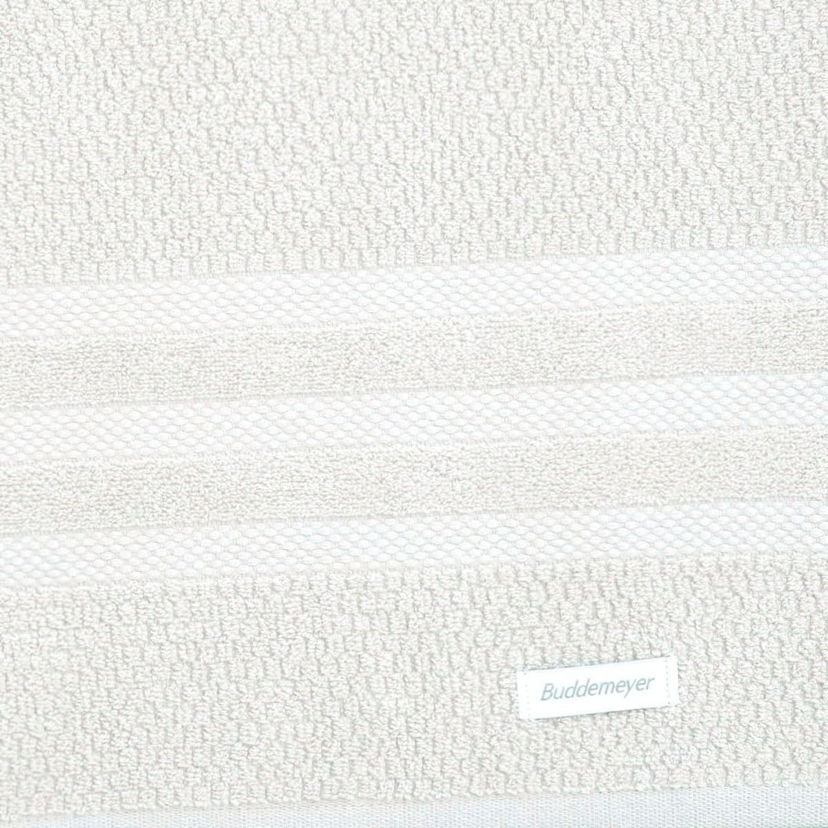 A toalha é fabricada em 100% algodão de alta qualidade, garantindo durabilidade e conforto térmico. Com dimensões de 70 x 135 cm e espessura de 0,5 cm, esta toalha Buddemeyer possui um peso otimizado de 1 quilograma, equilibrando perfeitamente volume e praticidade para o uso cotidiano.