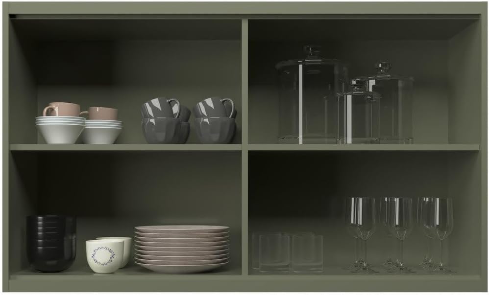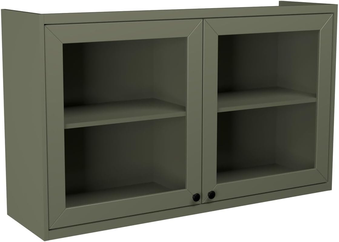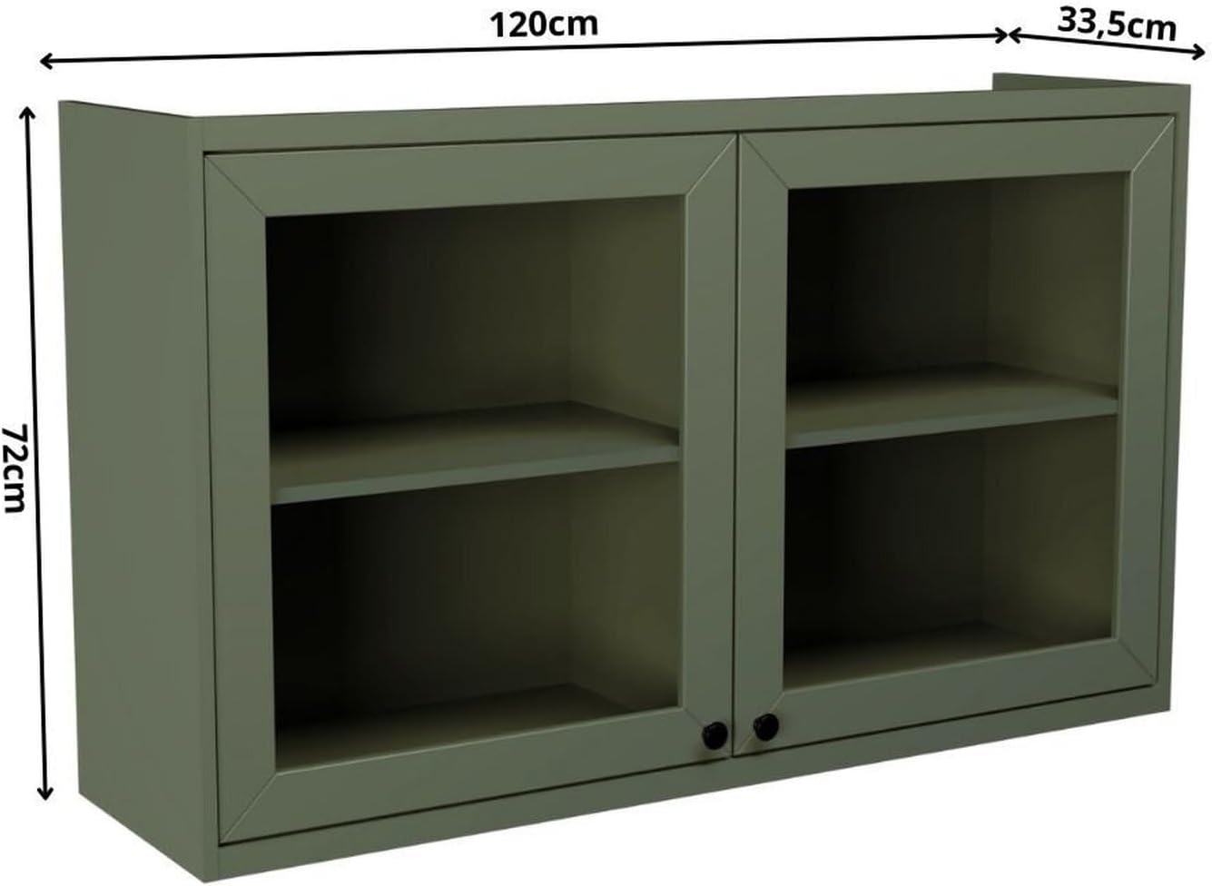O armário aéreo 120cm Sevilha é a solução ideal para quem busca renovar a cozinha com um toque de elegância e funcionalidade. Com um design sofisticado em tom verde e portas com vidro moldurado, este móvel transforma o visual do ambiente mantendo a organização sempre em dia.