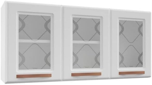 O modelo conta com três portas equipadas com vidros temperados, garantindo alta resistência a impactos no dia a dia. Além disso, os puxadores na cor Cobre Fosco elevam o visual da peça, entregando um armário de aço para cozinha com acabamento brilhoso que valoriza qualquer ambiente.
