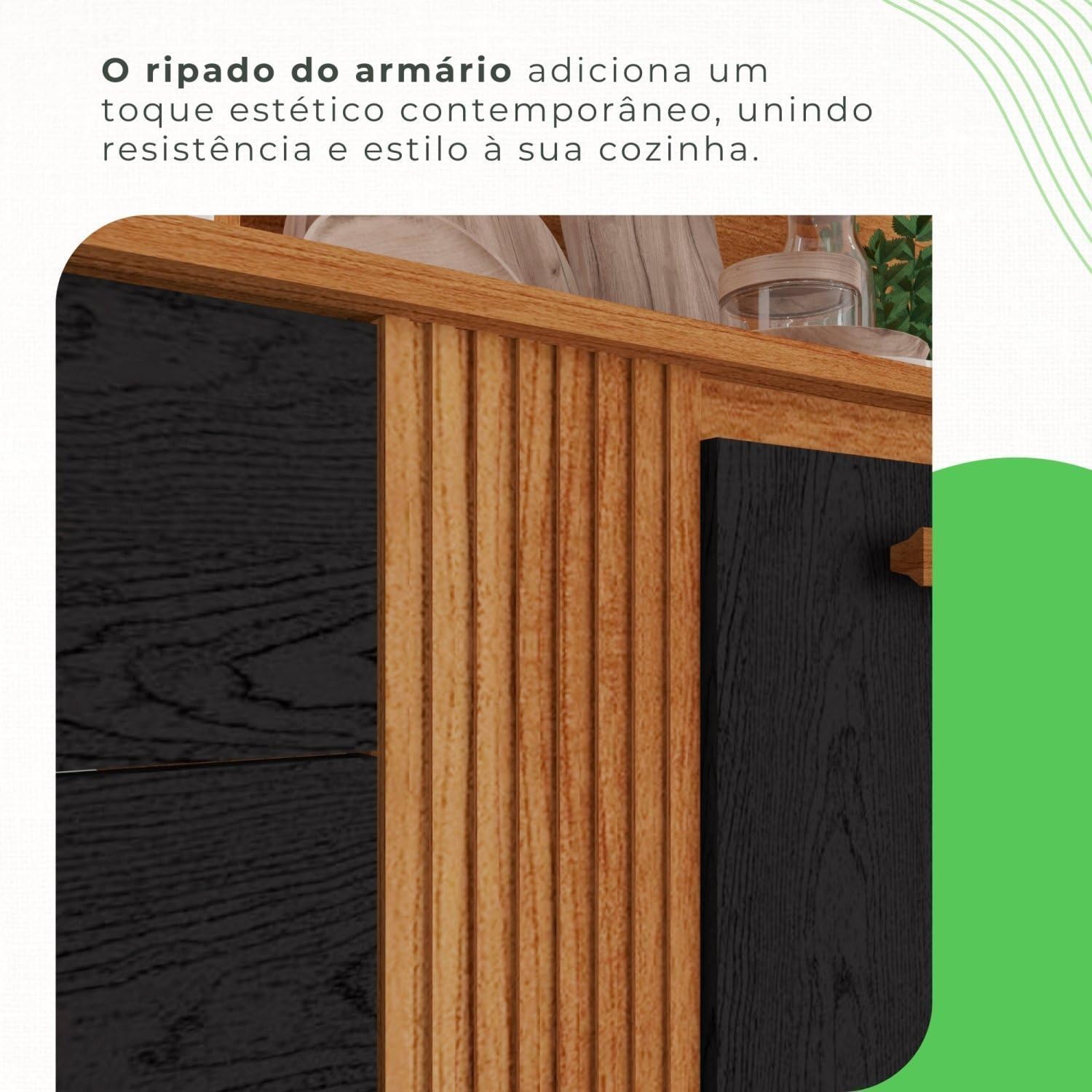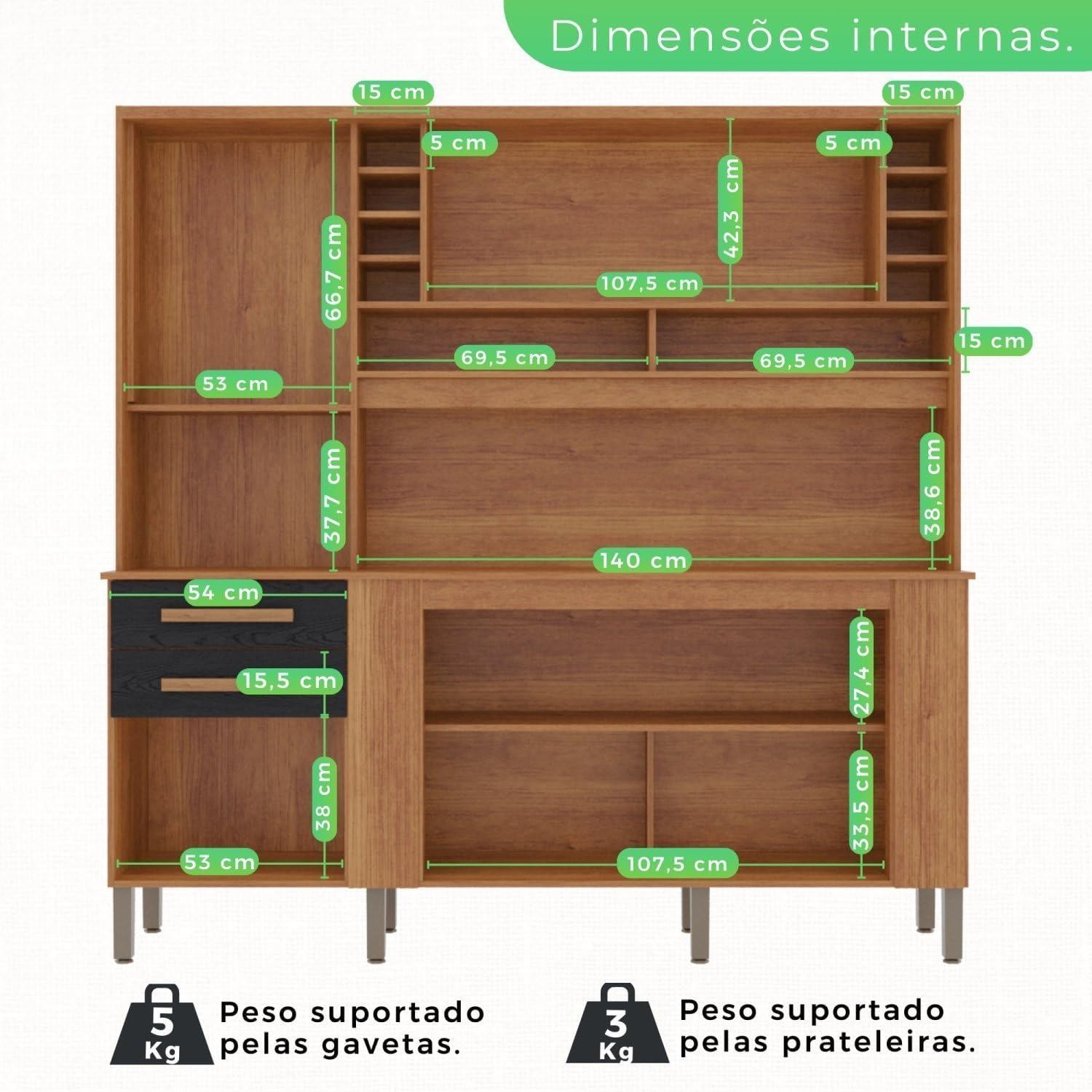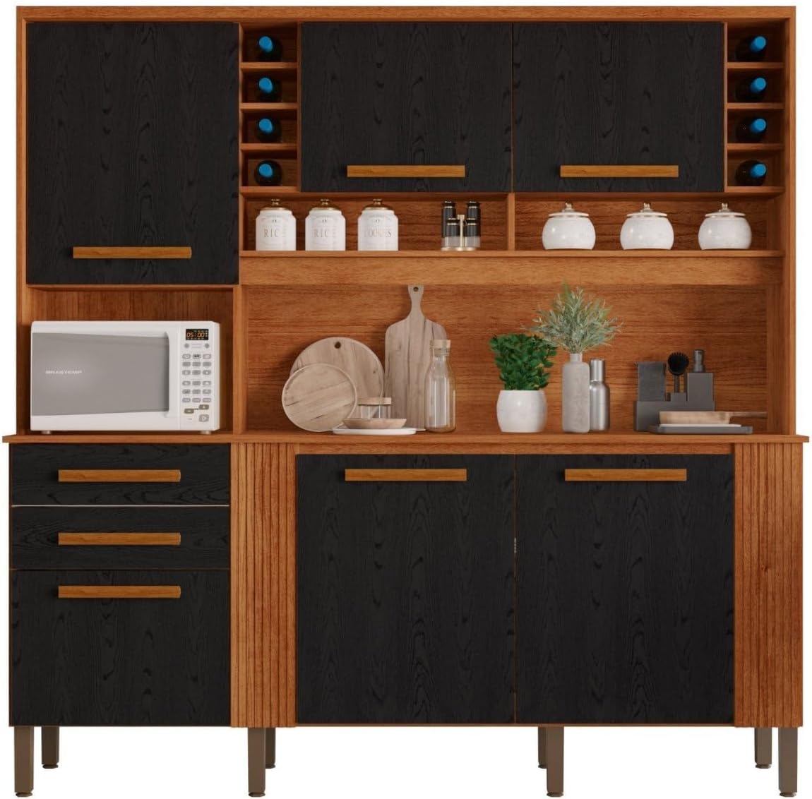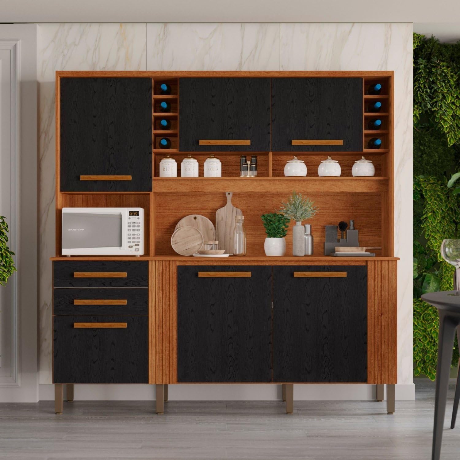 Além de sua utilidade, este móvel apresenta um acabamento pintado de alta qualidade na combinação Cinnamon Brown e Preto. A estética refinada não apenas complementa a decoração, mas também proporciona um visual sofisticado, garantindo que o seu espaço culinário fique completo e bonito como você sempre sonhou.