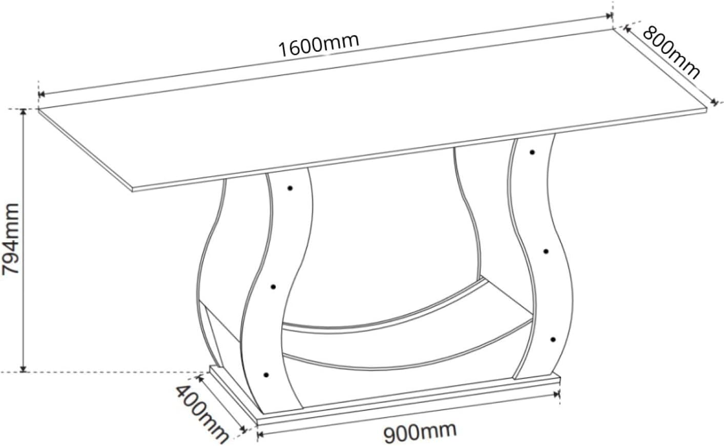 A mesa possui formato retangular com dimensões de 160 cm de comprimento por 80 cm de largura e 79,4 cm de altura. Construído inteiramente em madeira de alta qualidade, o conjunto apresenta peso total aproximado de 41,8 quilogramas, oferecendo a estabilidade necessária para o uso seguro em ambientes residenciais.