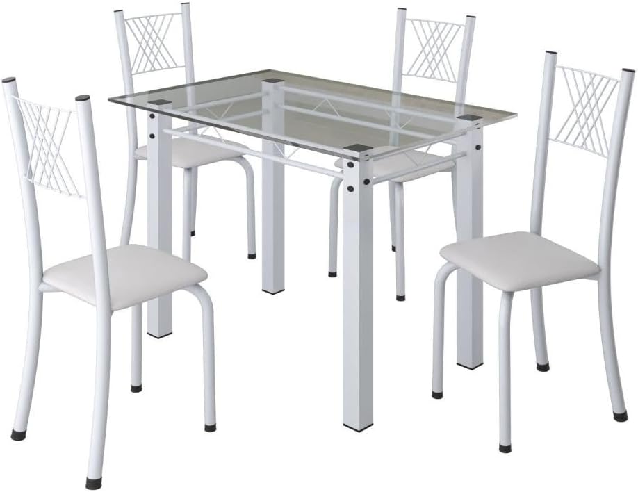 A mesa possui um tampo de vidro temperado que, além de conferir um brilho especial ao móvel, facilita a limpeza diária. A estrutura robusta oferece a estabilidade necessária para as refeições, tornando-se um item indispensável para quem preza por **qualidade e durabilidade** em móveis residenciais.